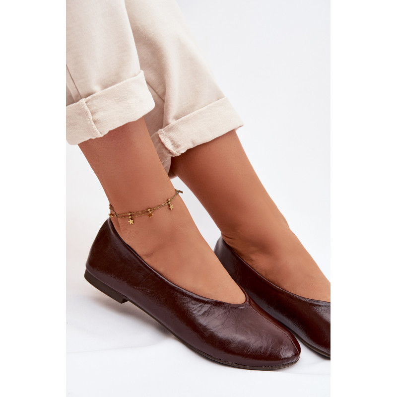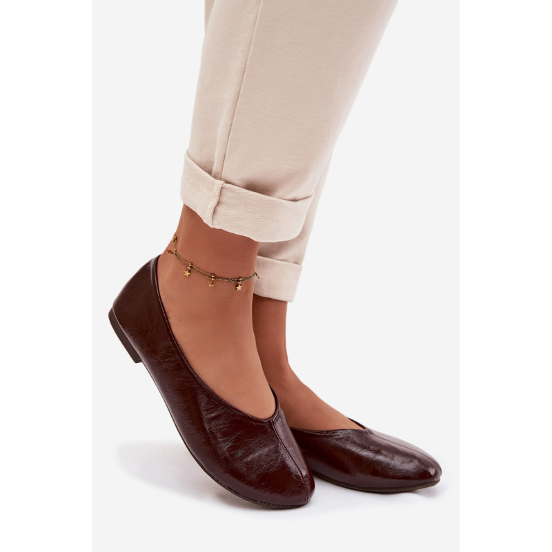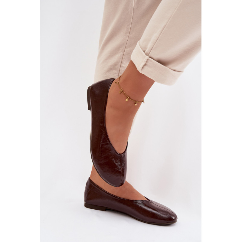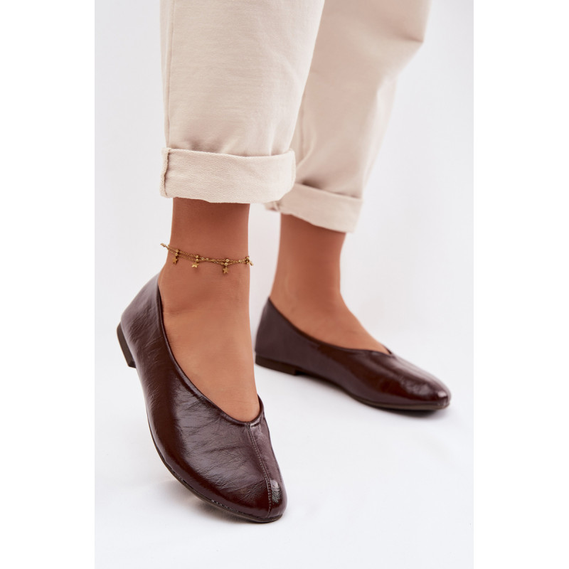 Moteriškos balerinos iš blizgaus ekologiško odos yra klasikinis ir elegantiškas pasirinkimas kasdieniam dėvėjimui. Plokščias modelis užtikrina patogumą, o suapvalinti priekiai suteikia subtilų, moterišką charakterį. Dekoratyviniai siūlai priekyje ir gale priduria stilingą akcentą. Šis modelis puikiai tinka tiek kasdienėms, tiek elegantiškesnėms aprangoms. Renkantis dydį, vadovaukitės dydžių lentele.