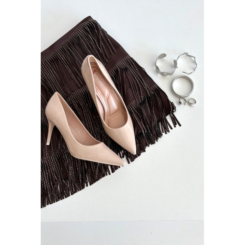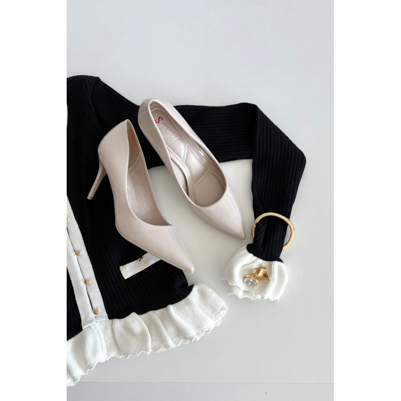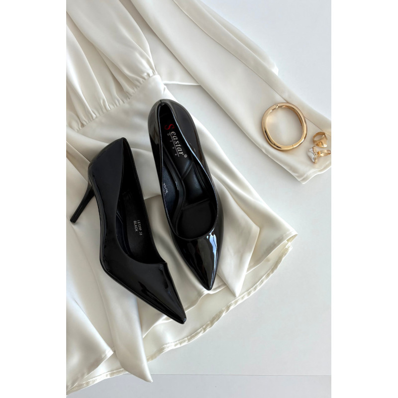 Moterų elegantiški aukštakulniai iš blizgios ekologiškos odos yra laiko patikrintas modelis, kuris puikiai papildys moterų garderobą. Blizganti apdaila daro batus ypač stilingus ir suteikia kiekvienai aprangai klasės. Ploni, smaili nosys gražiai ilgina koją, pabrėždamos jos delikatumą ir suteikdamos visumui subtilų moterišką charakterį. Ant lieso kulno pastatyti, jie ne tik prideda keletą centimetrų ūgio, bet ir modeliuoja siluetą. Šie batai tinka daugeliui progų – nuo kasdienio biuro stiliaus, iki formalių verslo susitikimų ir išskirtinių renginių ar vakaro išėjimų. Jų universalus, bet elegantiškas dizainas leidžia lengvai derinti juos tiek su elegantiška suknele, tiek su aptemptais džinsais ar sijonu. Renkantis dydį, prašome vadovautis dydžių lentele. Renkantis dydį, vadovaukitės dydžių lentele.