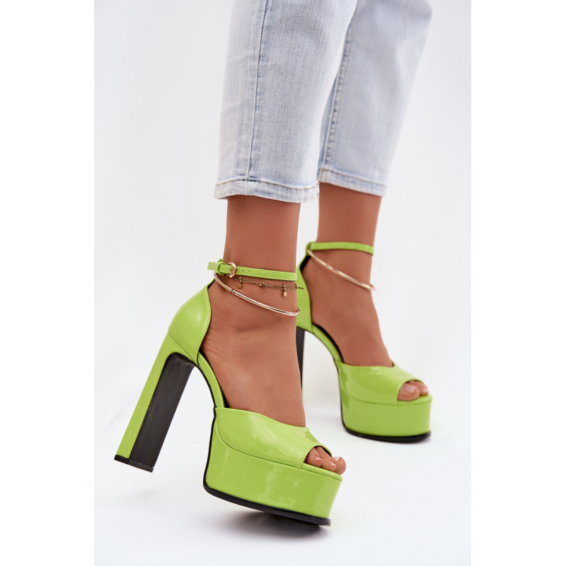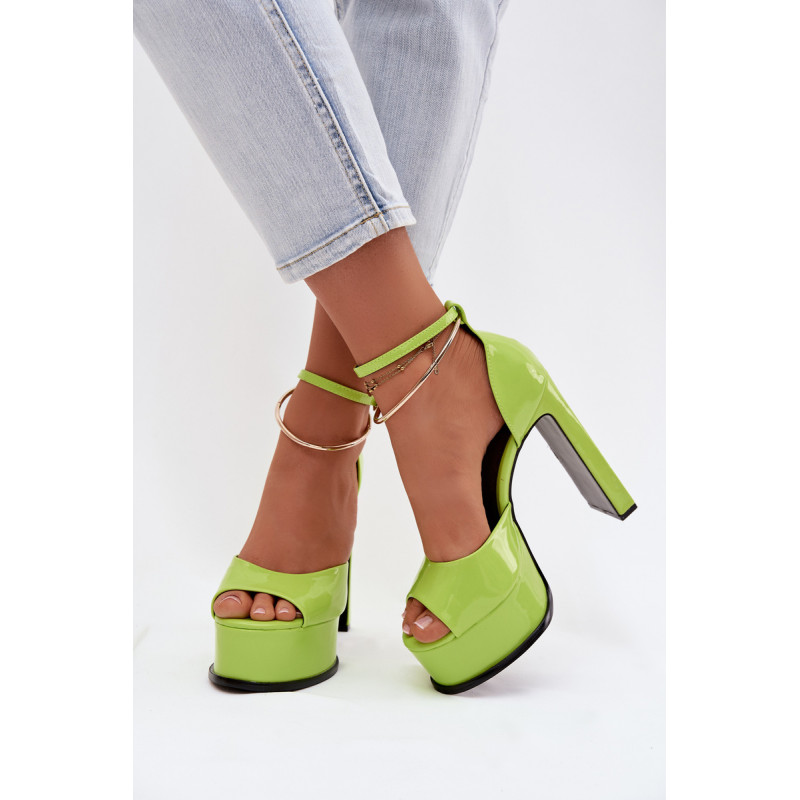 Moteriški sandalai iš eko odos, sumontuoti ant aukšto blokinio kulno ir platformos. Uždaryti sagtimi su reguliuojama juostele, kurią lengva nuimti, užtikrinant komfortą ir pritaikymą. Be to, šis modelis išsiskiria dekoratyvine apyranke, kuri suteikia jiems unikalų žavesį. Puikiai tinka vakariniams pasivaikščiojimams ir ypatingoms progoms. Renkantis dydį, vadovaukitės dydžių lentele.