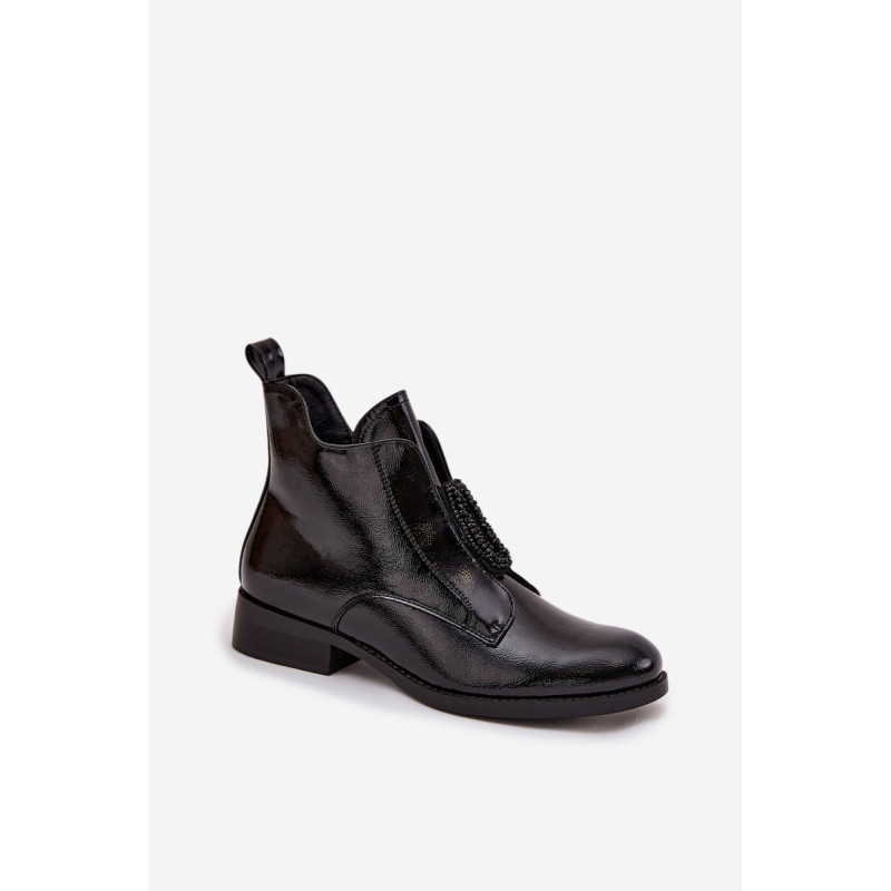 S.Barski prekės ženklo blizgios odos moteriški kulkšnies batai yra stilingas pasirinkimas moterims, vertinančioms eleganciją ir patogumą. Pagaminti iš aukštos kokybės ekologiškos odos, jie atrodo įspūdingai dėl savo blizgančios paviršiaus, kuris traukia dėmesį. Modelis turi plokščią kulną, užtikrinantį stabilumą ir patogumą kasdieniam dėvėjimui. Vidus yra izoliuotas, garantuojantis šilumą ir komfortą šaltomis dienomis. Priekyje yra subtilus dekoratyvinis elementas, kuris suteikia unikalų charakterį ir šiuolaikišką stilių. Uždarymas su užtrauktuku leidžia greitai užsidėti ir nusimauti batus. Tai universalus modelis, puikiai tinka tiek kasdieniams, tiek elegantiškiems įvaizdžiams. Prašome vadovautis dydžių lentele renkantis dydį. Renkantis dydį, vadovaukitės dydžių lentele.
