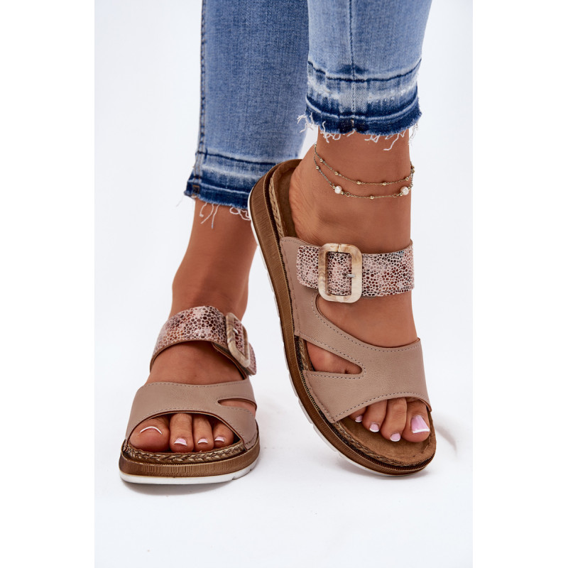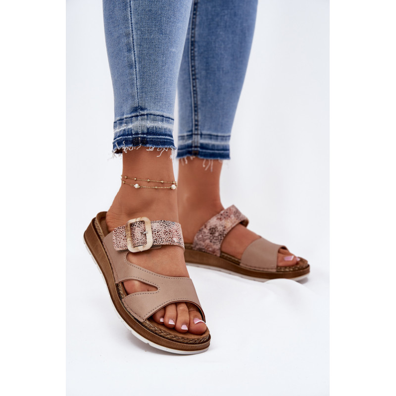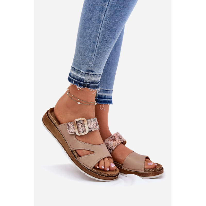 Moteriški šlepetės iš INBLU prekės ženklo. Pagaminti iš ekologiškos odos. Šis modelis turi reguliuojamą dirželį su sagtimi, kuris užtikrina puikų prigludimą prie pėdos. Vidinė pado dalis yra profiliuota, pritaikyta anatominėms pėdos formoms, pagaminta iš minkštos natūralios odos. Dviejų sluoksnių padas pagamintas iš lengvo ir elastingo medžiagos - poliuretano - užtikrina elastingumą ir labai gerą apkrovos perdavimą ant paviršiaus. Puikiai tinka kasdieniam stiliui. Renkantis dydį, vadovaukitės dydžių lentele.
