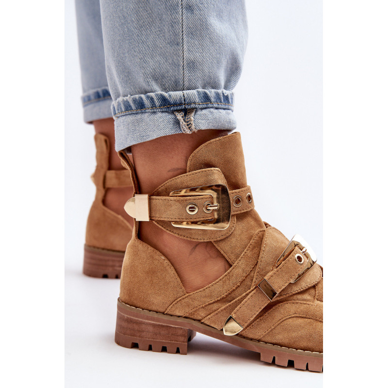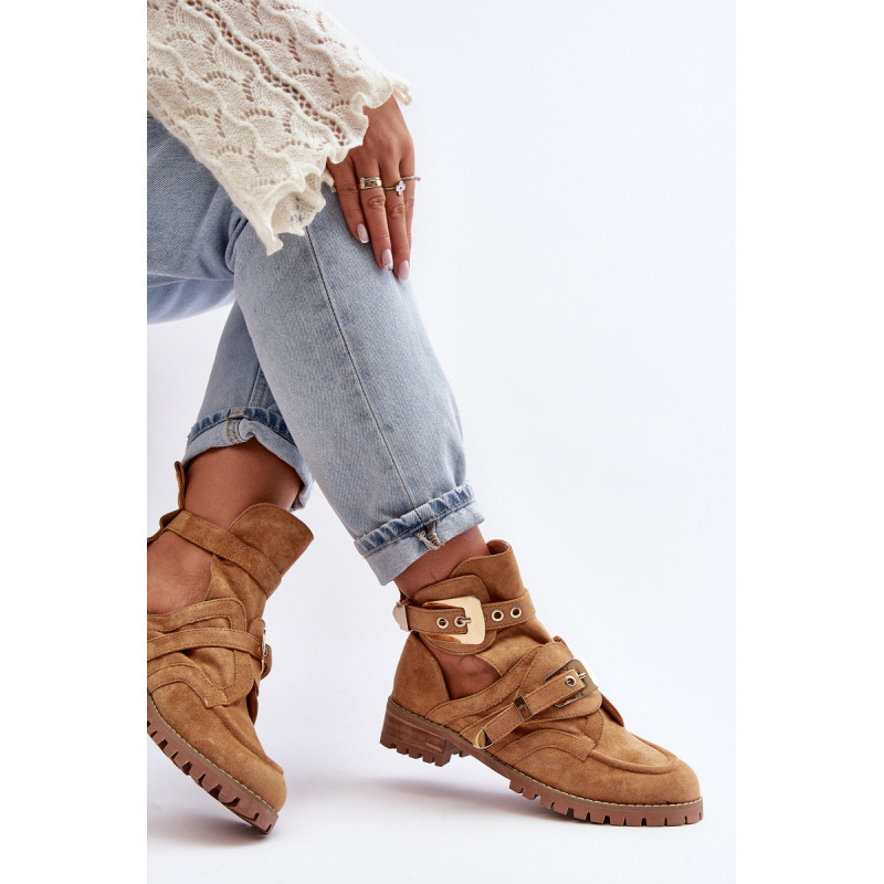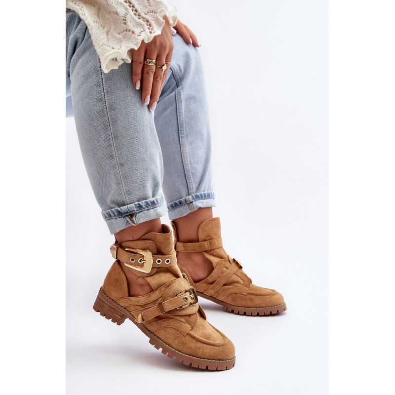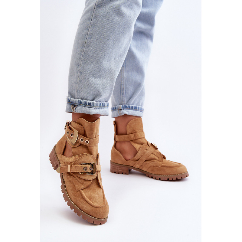 Jei norite sužibėti mados pasaulyje ar tiesiog parodyti savo geriausią pusę, šie zomšiniai batai jums tiks. Labai laukiama daugelio moterų! Jie atrodo labai žavingai, o auksinės sagtys suteikia tvirtą rokerio charakterį. Jie turi unikalų dizainą – yra iš dalies išpjauti, todėl užtikrins pakankamą pėdos vėdinimą. Aukštas, traktoriaus padas puikiai tinka prie likusios avalynės. Nelaukite ilgiau ir pirkite dabar, kol jų dar yra!