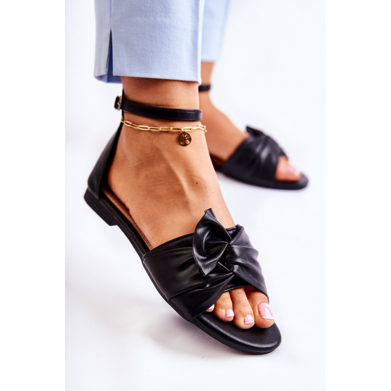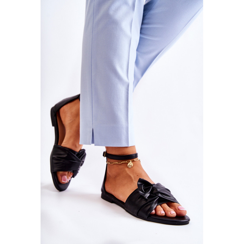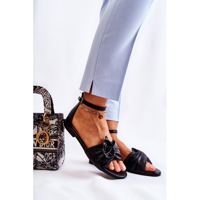 Nuostabūs moteriški sandalai pagaminti iš ekologiškos odos. Jie turi dekoratyvinę juostelę priekyje. Nugaroje užsegamas užtrauktuku. Be to, sandalai turi sagtį su reguliuojamu dirželiu, užsegamu aplink kulkšnį. Vidpadis taip pat pagamintas iš eko odos. Batai montuojami ant plokščio kulno ir neslidaus pado. Nosis atvira, suapvalinta. Jie puikiai tinka ne tik elegantiškai, bet ir kasdienei stilizacijai. Renkantis dydį, naudokite dydžių lentelę.