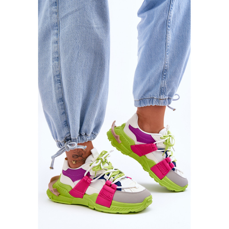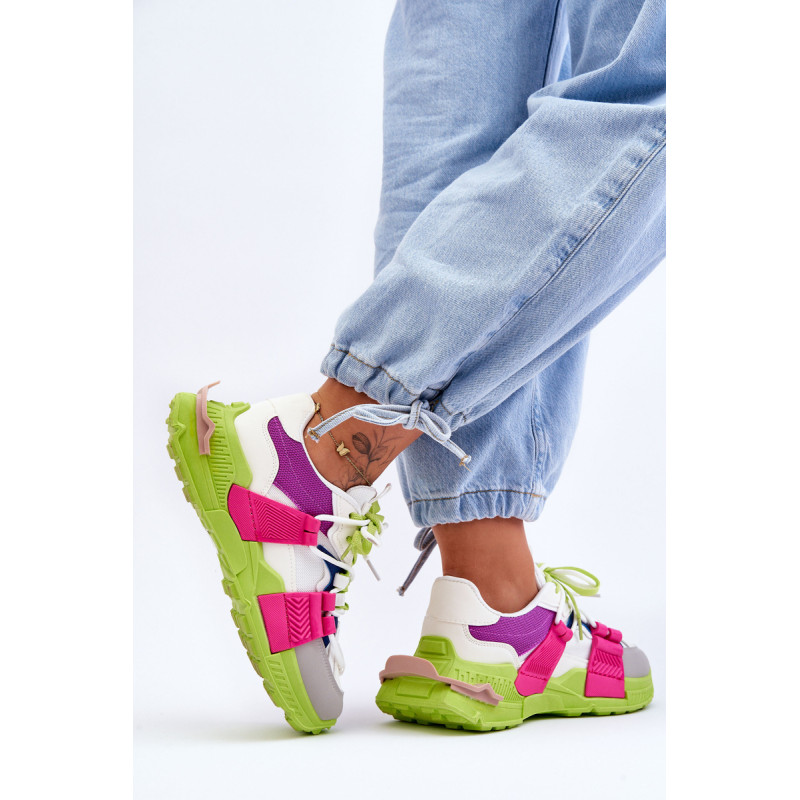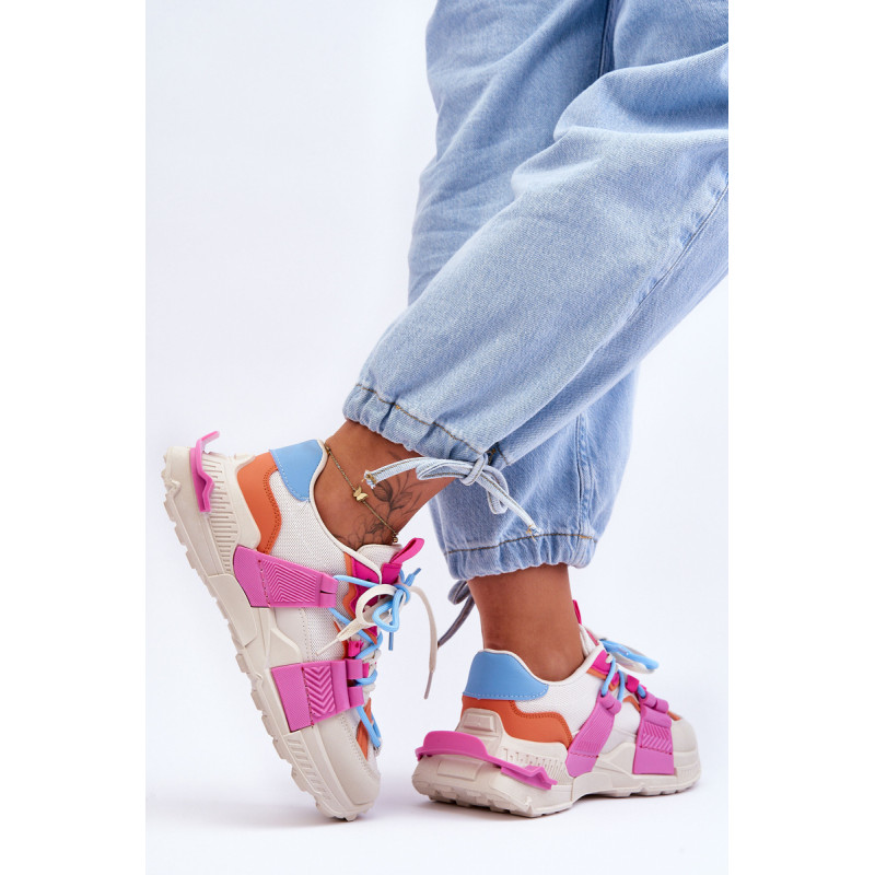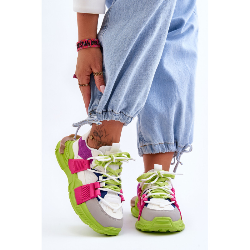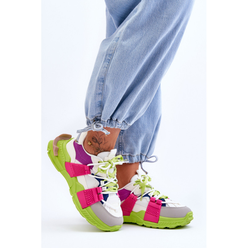 Moteriški sportiniai bateliai pagaminti iš eko odos ir tekstilės medžiagos derinio. Klasikinis suvarstomas modelis leis tinkamai priderinti avalynę prie kojos pločio. Batai buvo pastatyti ant masyvios platformos plokščiu kulnu. Medžiaginis įdėklas užtikrins patogų avalynės naudojimą. Šie madingi sportbačiai tikrai tiks prie daugelio stilių! Rinkdamiesi dydį, žiūrėkite dydžių lentelę.