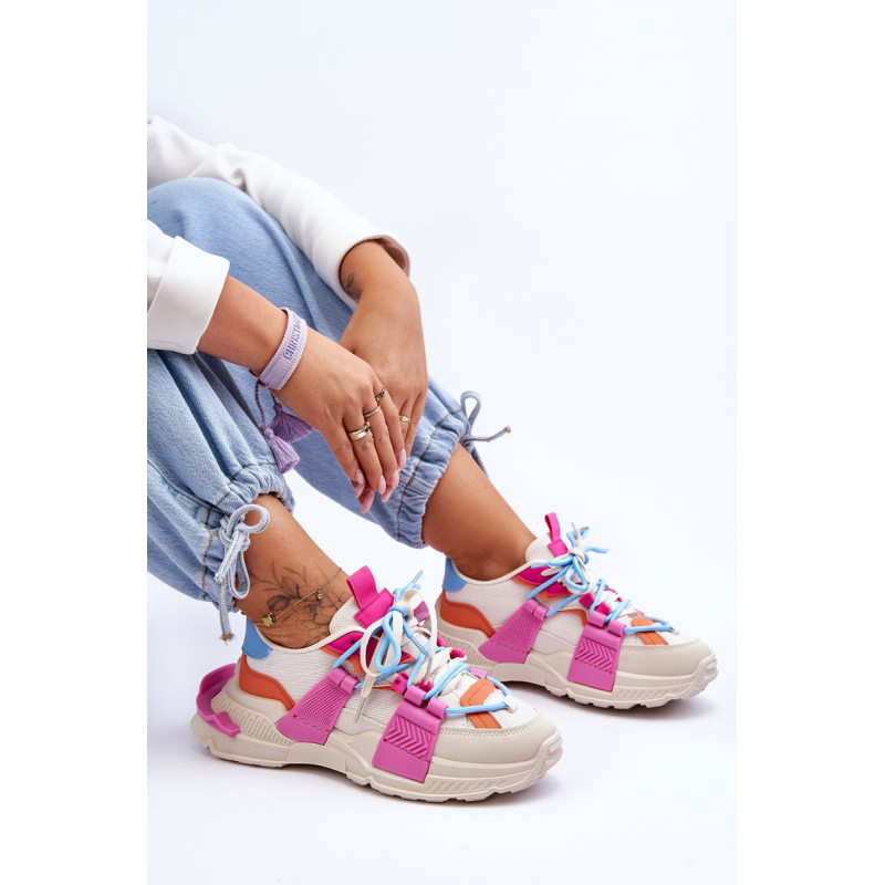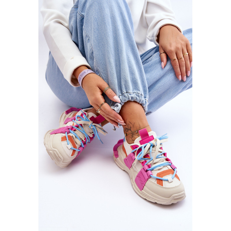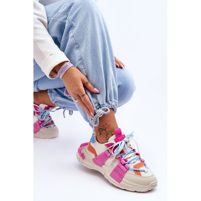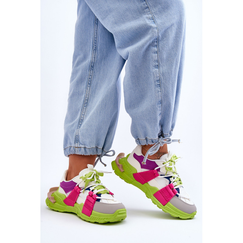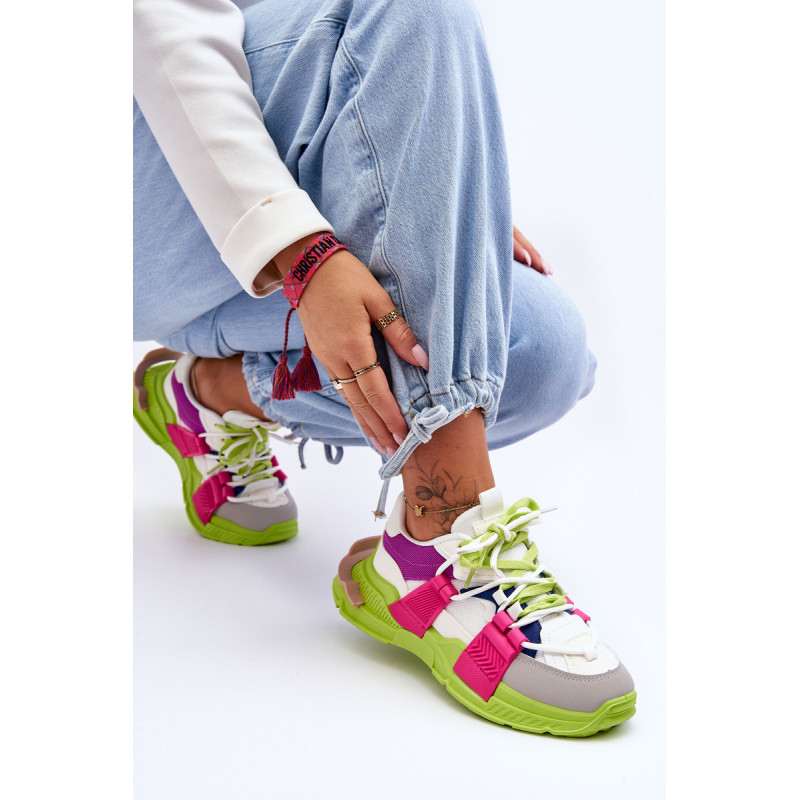 Moteriški sportiniai bateliai pagaminti iš eko odos ir tekstilės medžiagos derinio. Klasikinis suvarstomas modelis leis tinkamai priderinti avalynę prie kojos pločio. Batai buvo pastatyti ant masyvios platformos plokščiu kulnu. Medžiaginis įdėklas užtikrins patogų avalynės naudojimą. Šie madingi sportbačiai tikrai tiks prie daugelio stilių! Rinkdamiesi dydį, žiūrėkite dydžių lentelę.