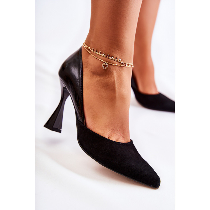 Šie siurbliai yra šio sezono HIT! Pagaminta iš natūralios zomšos ir natūralios odos derinio. Jie montuojami ant madingo kulno, siaurėjančio į viršų ir platesnio apačioje. Jie turi smailų pirštą. Modelis yra stabilesnis nei klasikiniai aukštakulniai dėl modernaus kulno. Vidpadis labai minkštas ir patogus naudoti, pagamintas iš natūralios odos. Šie siurbliai puikiai tiks įvairioms svarbioms šventėms ar verslo susitikimams. Renkantis dydį, naudokite dydžių lentelę