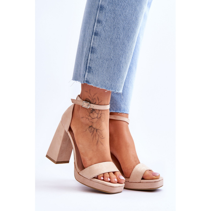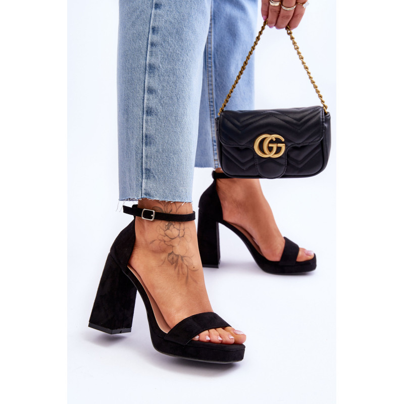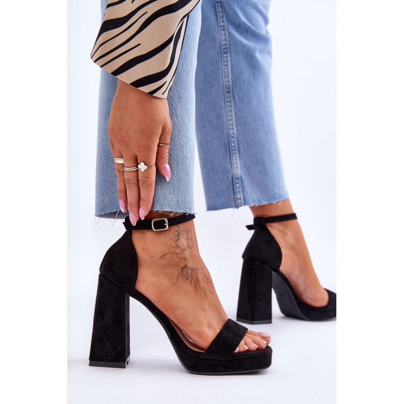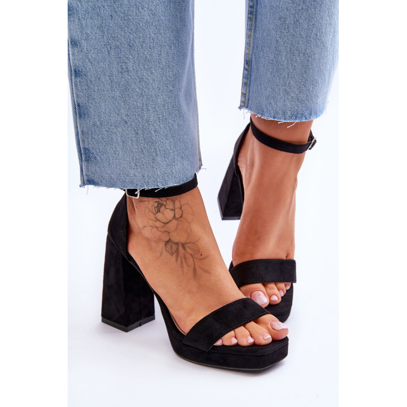 Nuostabūs basutės su masyviu kvadratiniu kulnu ir platforma turėtų būti jūsų! Jie turi dirželį priekyje, o nugaroje – standintą kulno skaitiklį. Šis modelis pagamintas iš malonios liesti ekologiškos zomšos. Sandalai turi klasikinį užsegimą su reguliuojamu dirželiu su sagtimi. Būtinai peržiūrėkite ir kitų spalvų basutes! Rinkdamiesi dydį žiūrėkite dydžių lentelę.