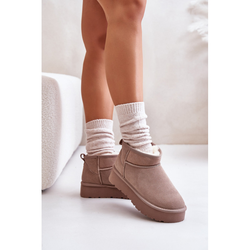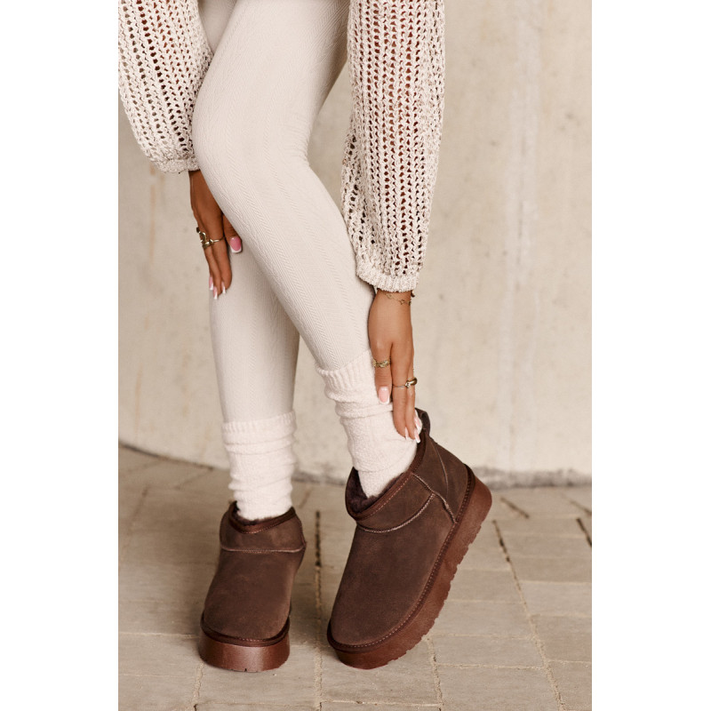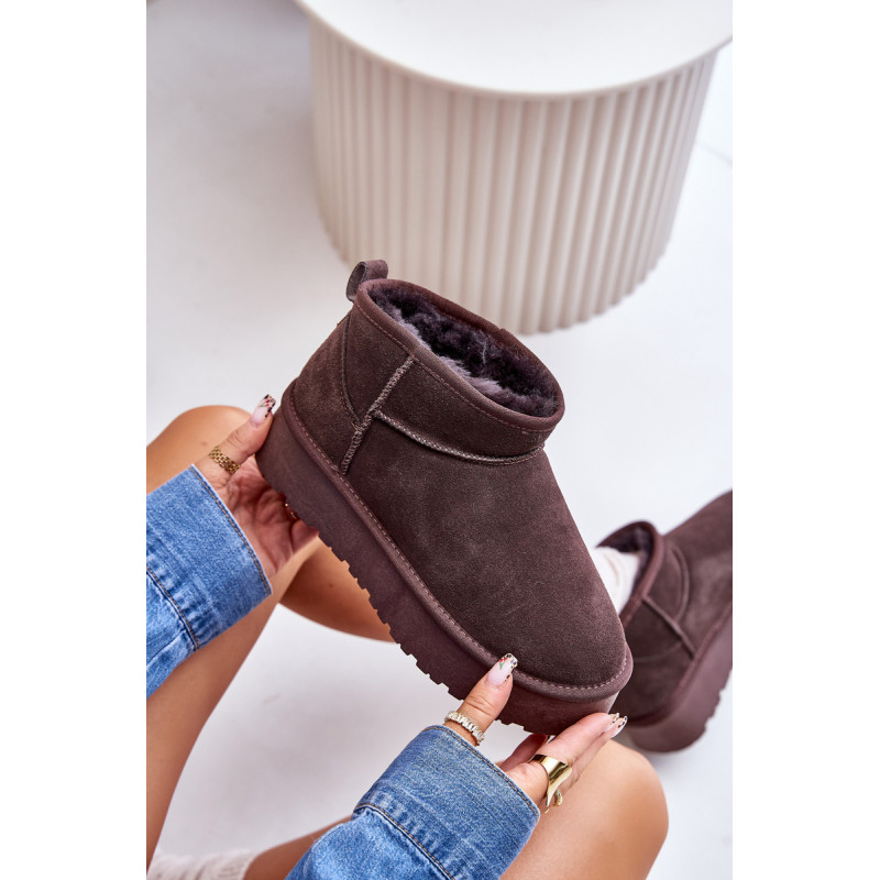 Moteriški sniego batai puikiai tinka šaltoms dienoms. Pagaminta iš aukštos kokybės natūralios odos. Batų vidus apšiltintas storu, ekologišku kailiu. Šį klasikinį modelį galite derinti prie daugelio stilių. Batai turi masyvią platformą, kuri puikiai izoliuoja nuo žemės. Batai itin lengvi. Rinkdamiesi dydį, žiūrėkite dydžių lentelę.