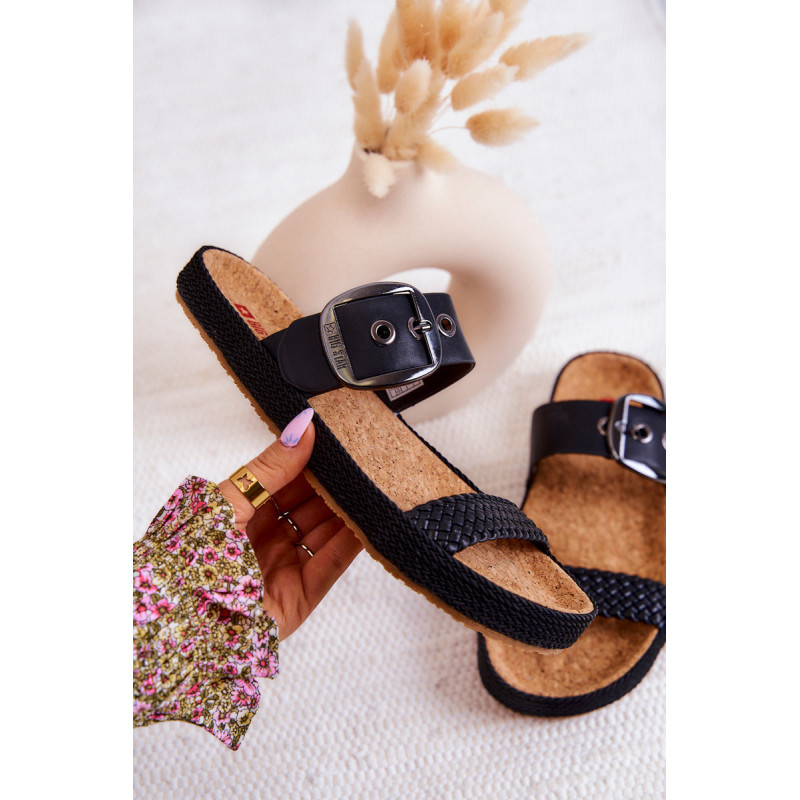 Madingos prekės ženklo Big Star šlepetės. Pagaminta iš aukštos kokybės eko odos. Profiliuotas, kamštinis vidpadis. Padas pagamintas iš guminės medžiagos, neslidus, dekoruotas pynute. Slip-on modelis, papildomai užsegamas sagtimi. Jis turi reguliuojamą dirželį, kurį galite tinkamai pritaikyti prie kojos pločio. Batai puikiai atrodo ant kojos! Turėtumėte juos turėti savo šlepečių kolekcijoje! Renkantis dydį, naudokite dydžių lentelę.