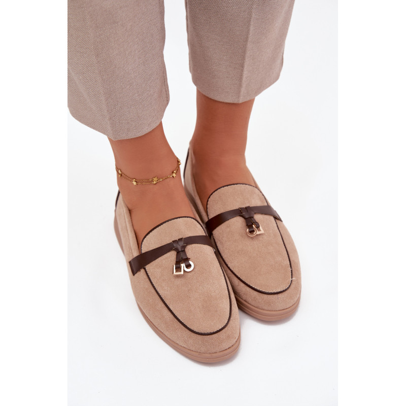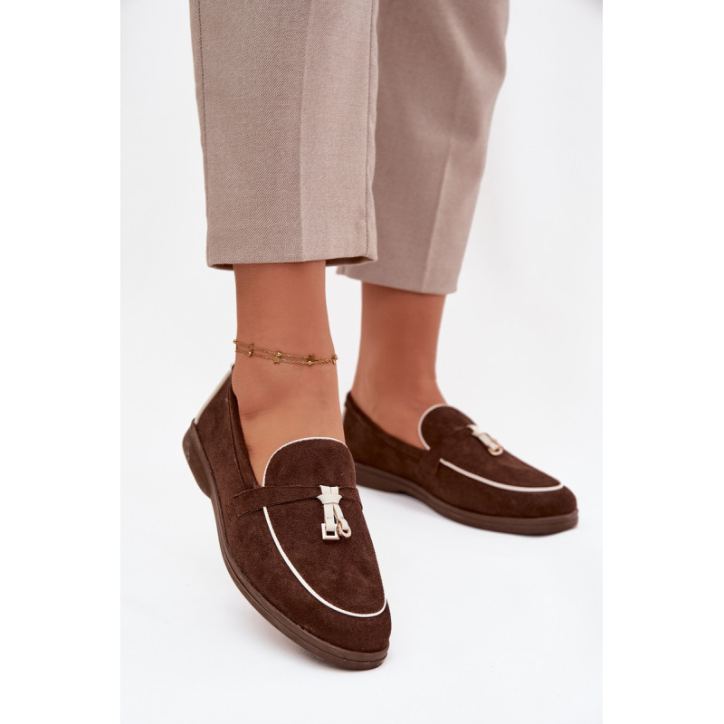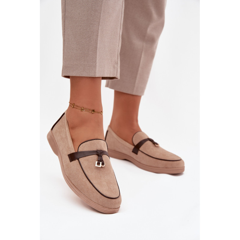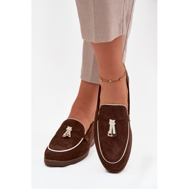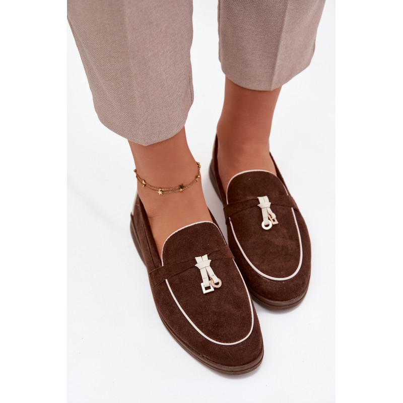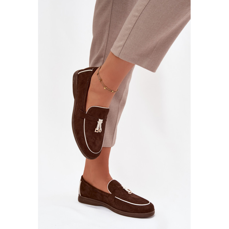 Stilingos moteriški loaferiai pagaminti iš ekologiško zomšiaus. Modelis su plokščiu kulnu užtikrina patogumą visą dieną, o subtilus dekoratyvinis detalė priekyje suteikia madingą akcentą. Apvalios nosys pabrėžia klasikinę kirpimą, todėl batai puikiai tinka tiek kasdienėms, tiek elegantiškoms aprangoms. Renkantis dydį, prašome vadovautis dydžių lentele. Renkantis dydį, vadovaukitės dydžių lentele.