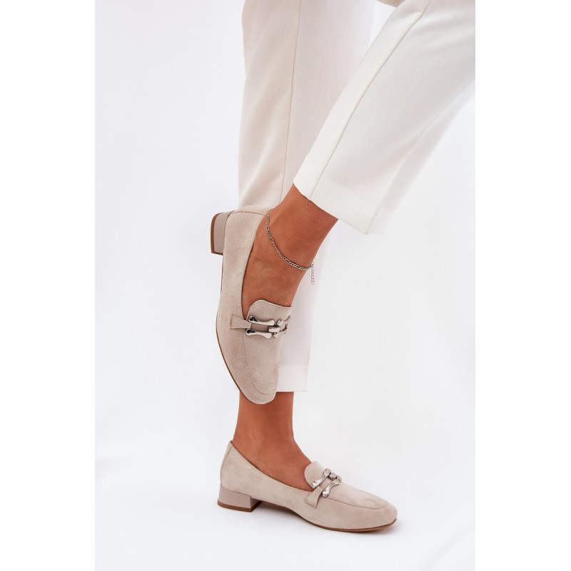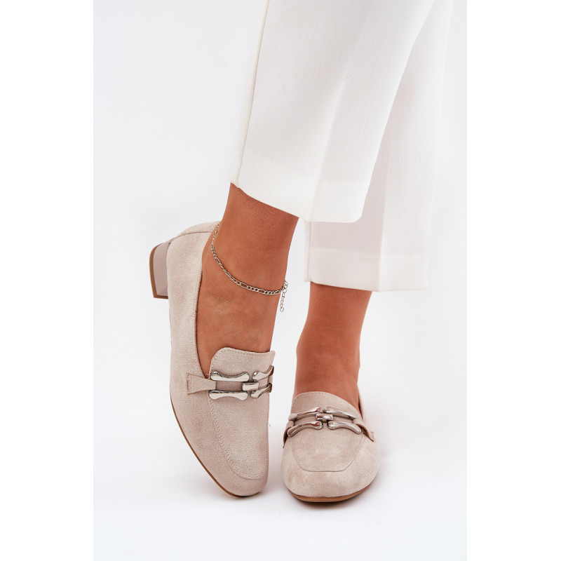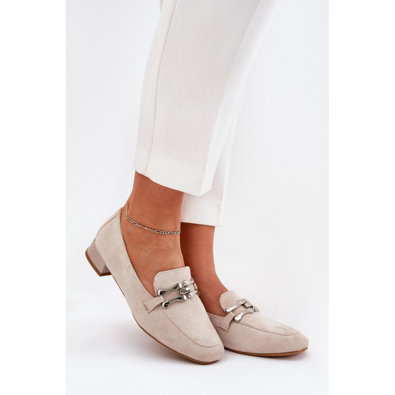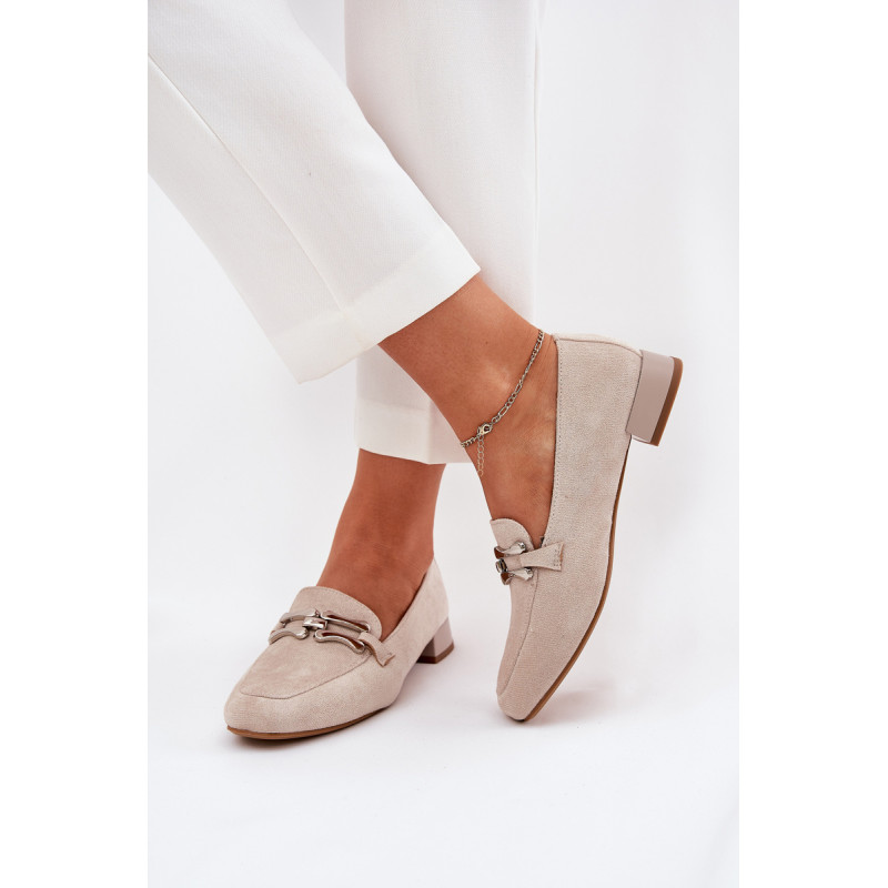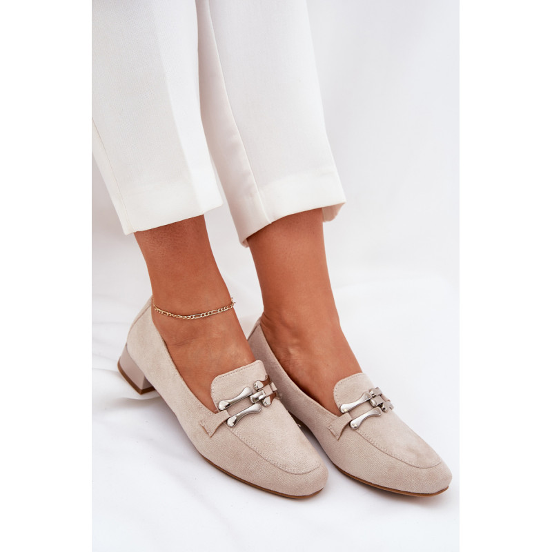 Mokasinai iš prekės ženklo Jezzi. Pagaminti iš ekologiško zomšo, tai elegantiška ir patogi kasdienio dėvėjimo alternatyva. Priekyje yra puošmena, kuri suteikia jiems subtilaus žavesio. Suapvalinti pirštai užtikrina komfortą visą dieną. Oda vidpadis rūpinasi pėdų komfortu, o subtilus kulnas užtikrina stabilumą ir lengvumą kiekviename žingsnyje. Šie mokasinai puikiai dera su kasdieniškais drabužių deriniais, derinant stilių su funkcionalumu. Renkantis dydį, vadovaukitės dydžių lentele.