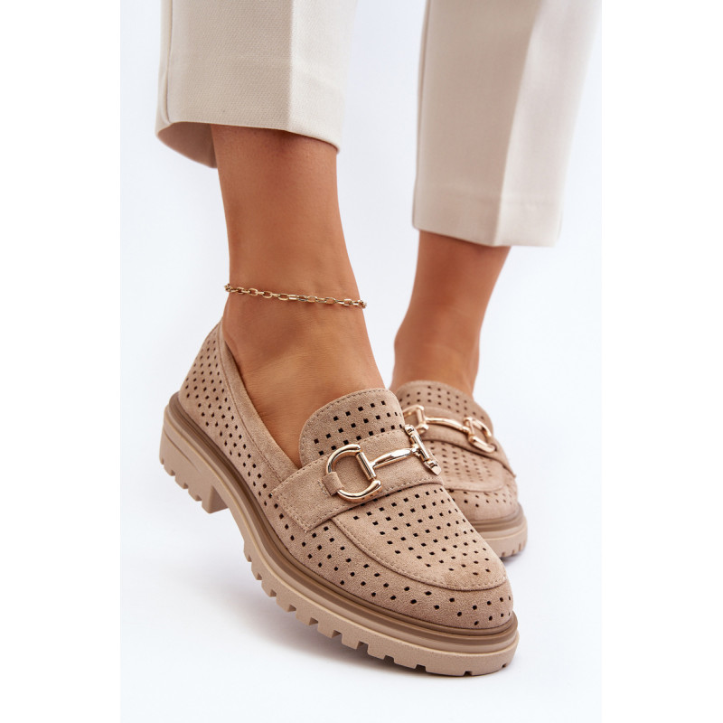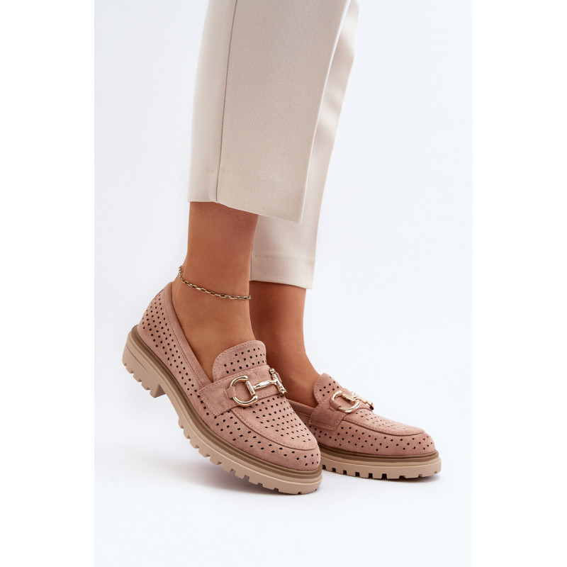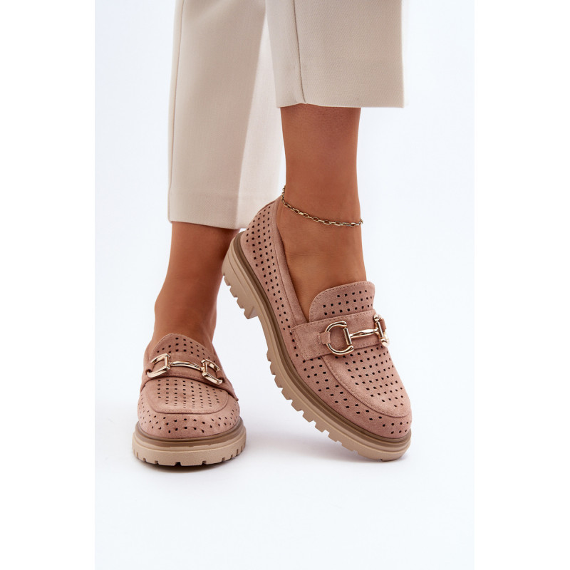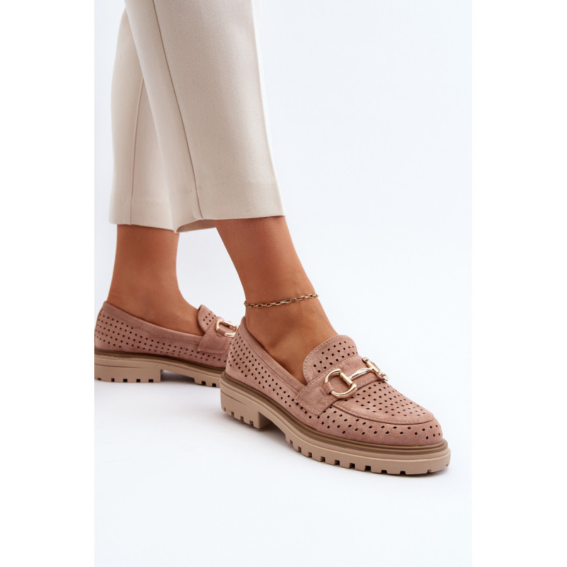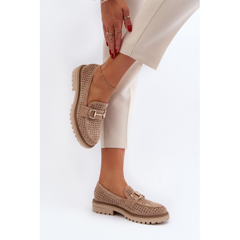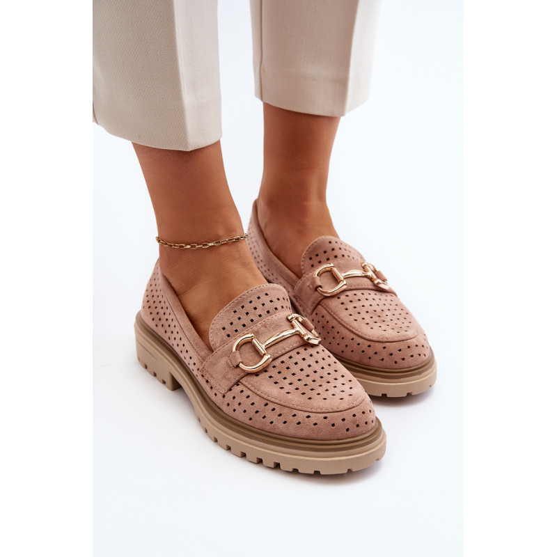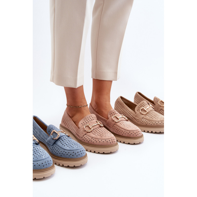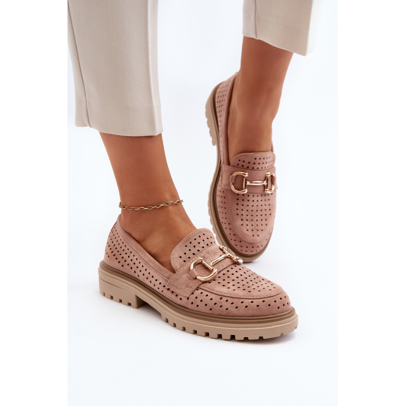 Suvarstomi moteriški mokasinai, pagaminti iš ekologiškos zomšos, atrodo elegantiškai ir puikiai papildo pavasario-vasaros stilių. Priekyje esanti dekoracija suteikia žavesio ir elegancijos. Komplektukas ant plokščio kulno ir padas iš guminės medžiagos. Suapvalinti kojų pirštai. Eko odos vidpadis yra minkštas ir patogus. Jūs tikrai turėtumėte juos turėti! Rinkdamiesi dydį, vadovaukitės dydžių lentele.