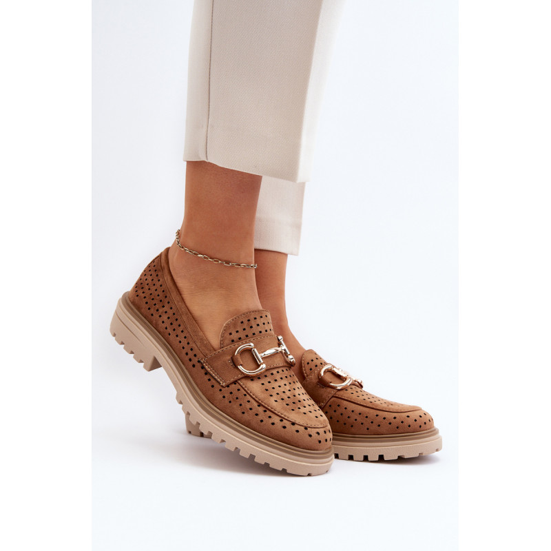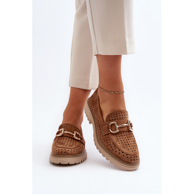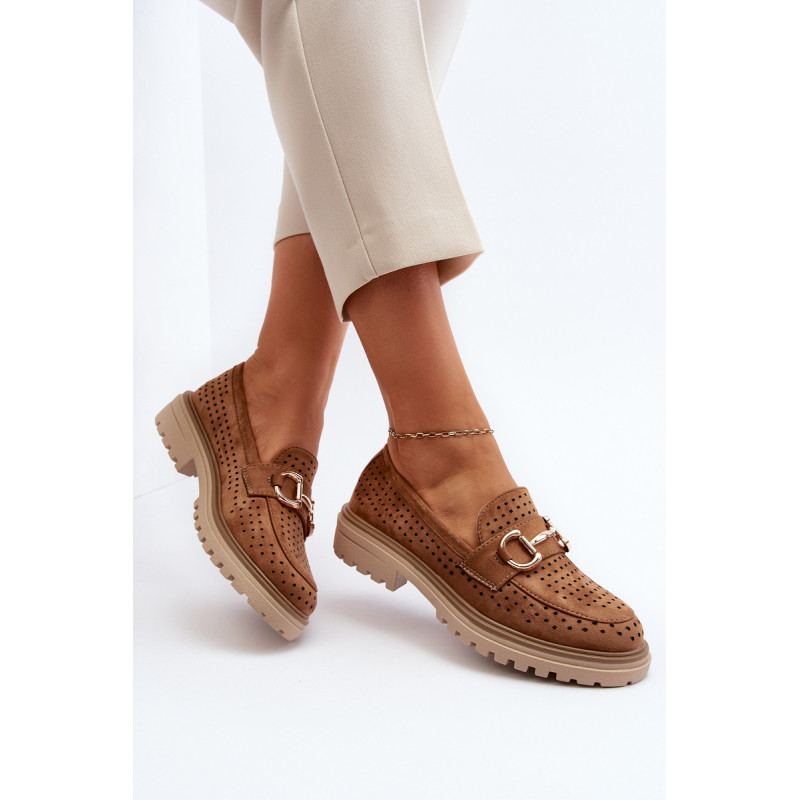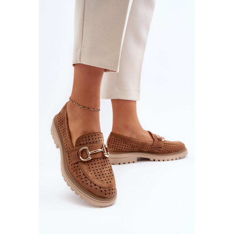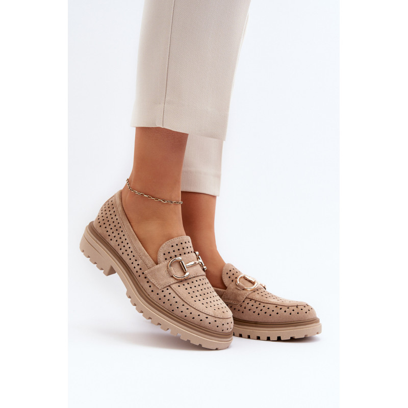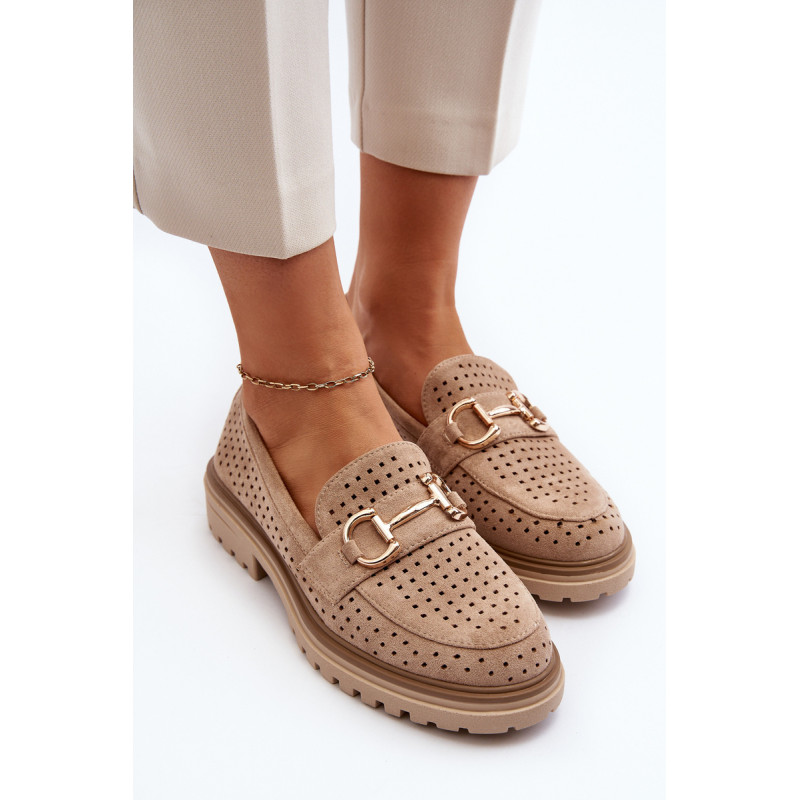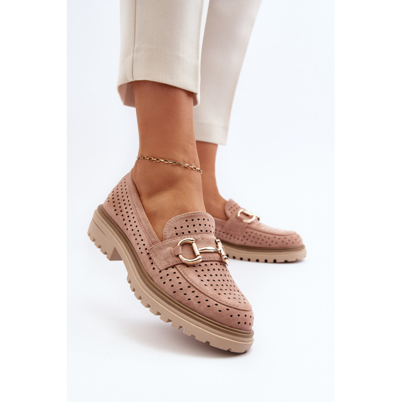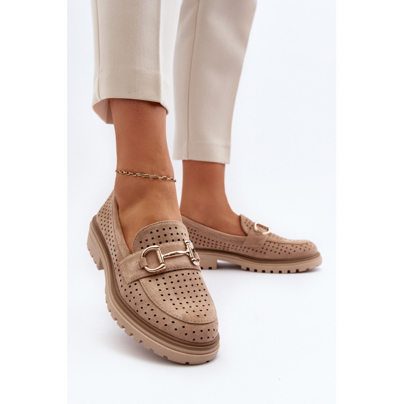 Suvarstomi moteriški mokasinai, pagaminti iš ekologiškos zomšos, atrodo elegantiškai ir puikiai papildo pavasario-vasaros stilių. Priekyje esanti dekoracija suteikia žavesio ir elegancijos. Komplektukas ant plokščio kulno ir padas iš guminės medžiagos. Suapvalinti kojų pirštai. Eko odos vidpadis yra minkštas ir patogus. Jūs tikrai turėtumėte juos turėti! Rinkdamiesi dydį, vadovaukitės dydžių lentele.