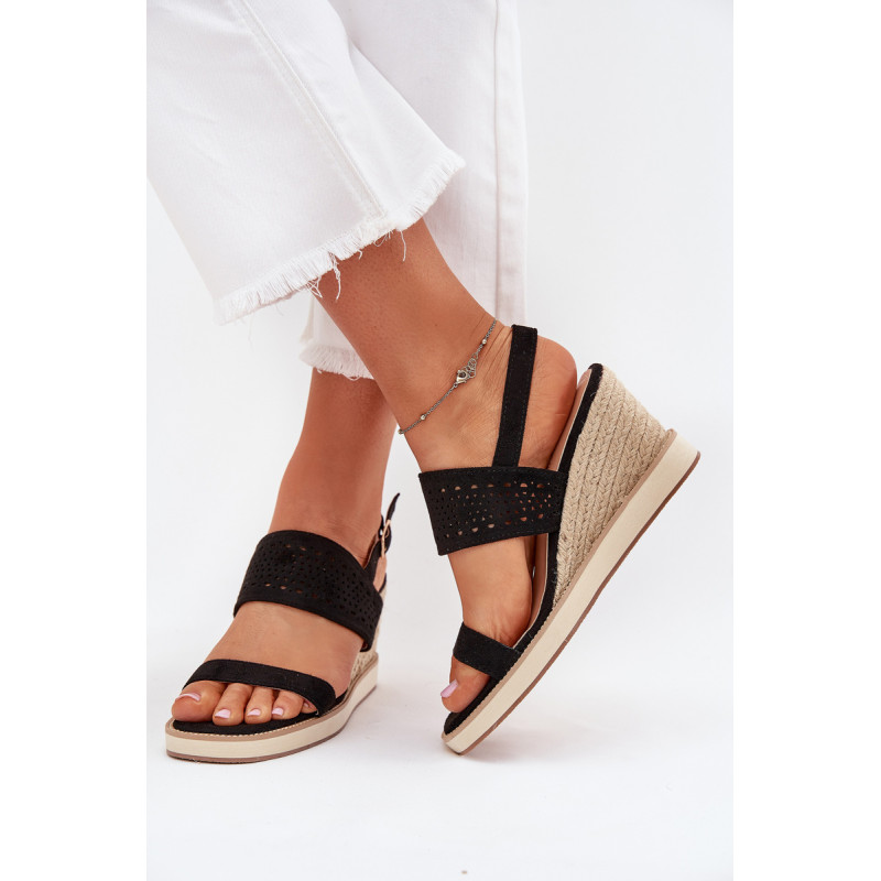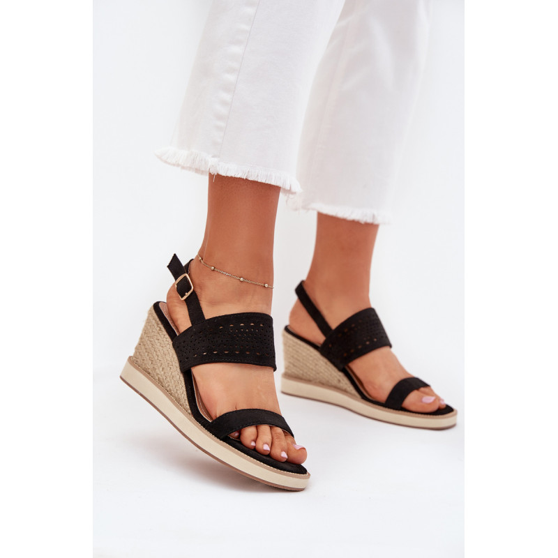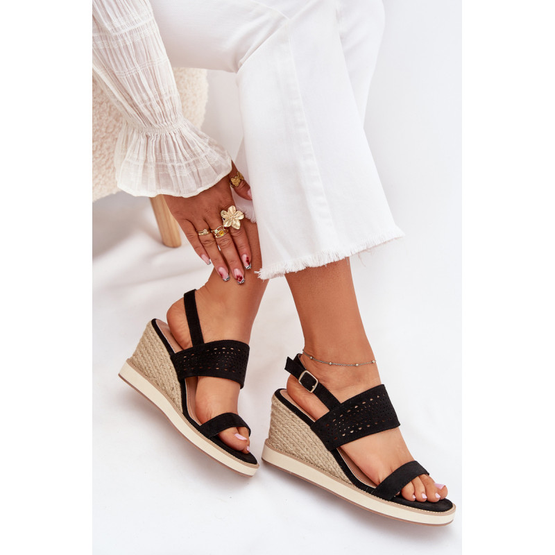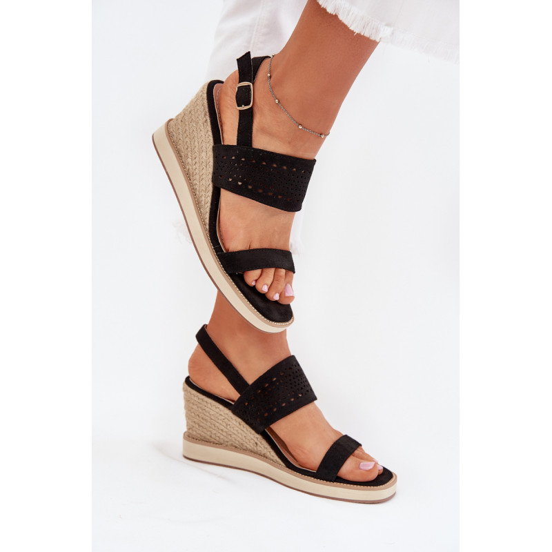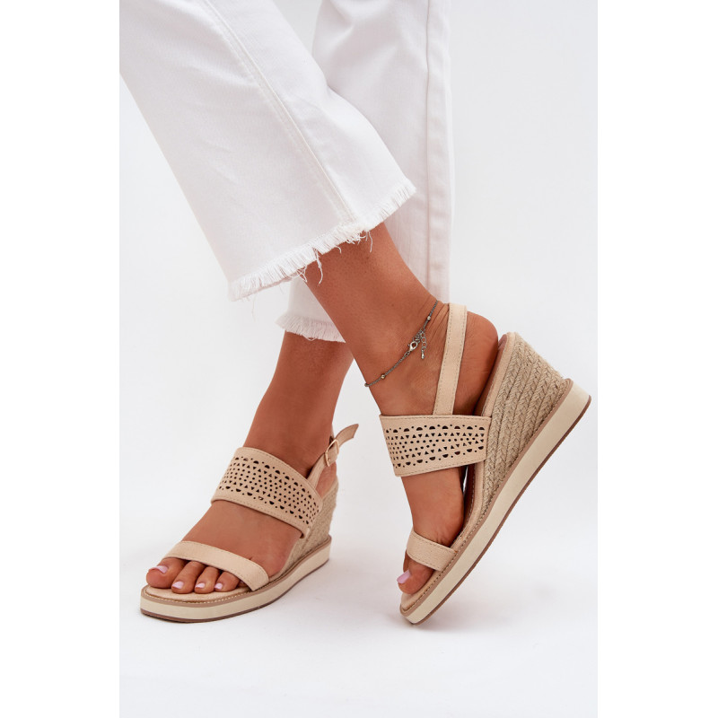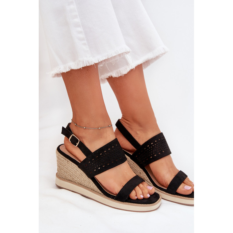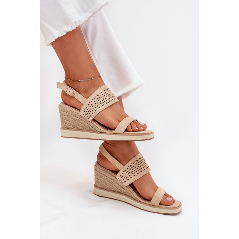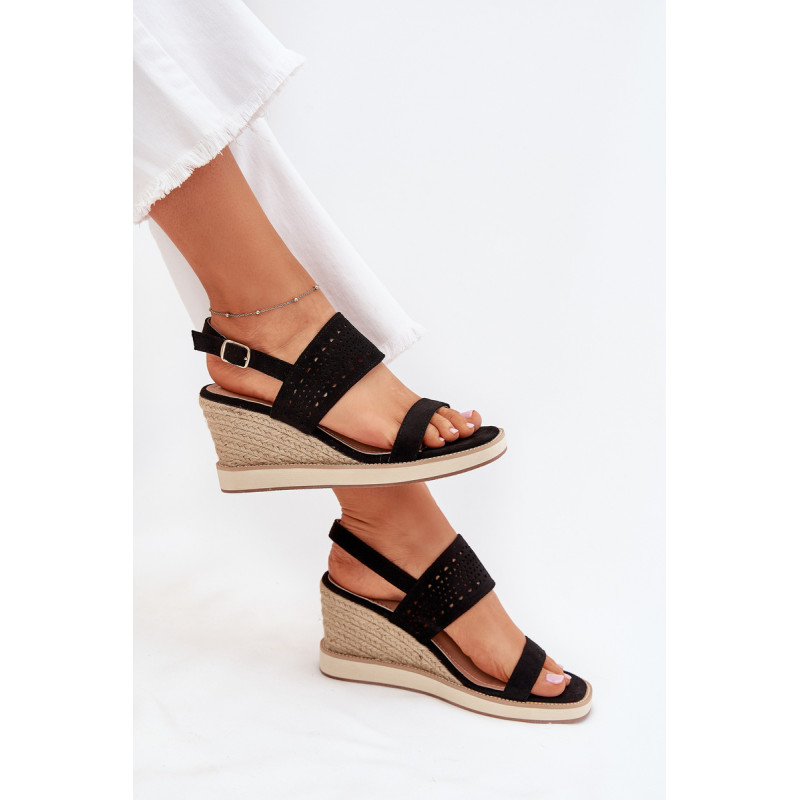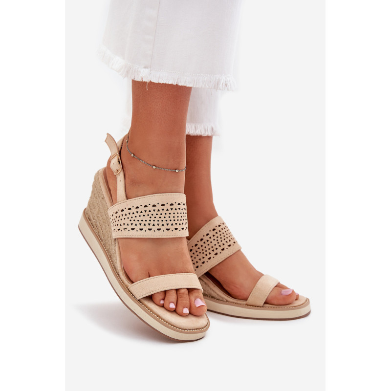 Moteriški sandalai iš eko zomšos, įrengti ant pintos platformos, yra puikus pasirinkimas vasaros dienoms. Uždaryti sagtimi su reguliuojama juostele, jie suteikia komfortą ir idealiai tinka. Ažūrinis raštas ant juostelės suteikia jiems lengvumo ir subtilumo. Idealiai tinka vasaros suknelėms ir audinio kelnėms, jie sujungia stilingą išvaizdą su komfortu, sukurdami puikią pasirinkimą šiltoms dienoms. Renkantis dydį, vadovaukitės dydžių lentele.