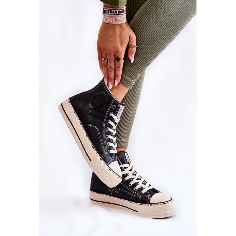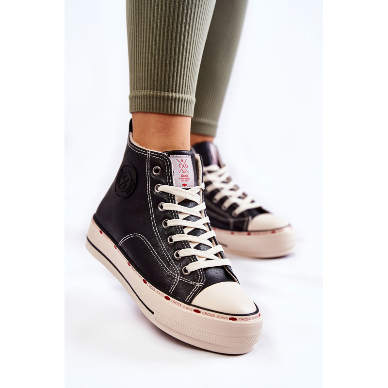 Jei ieškote tobulų sportbačių, Cross Jeans turi kažką ypatingo! Aukšti sportbačiai, siekiantys aukščiau kulkšnis. Klasikinis modelis su dekoratyviniu logotipu ant viršaus ir liežuvėlio. Papildomas privalumas – tvirtas neslystantis padas. Pagaminta iš ekologiškos odos. Batai buvo izoliuoti minkšta antklode. Jie puikiai papildys daugelį rudens stilizacijų. Jūs privalote juos turėti! Renkantis dydį, naudokite dydžių lentelę.