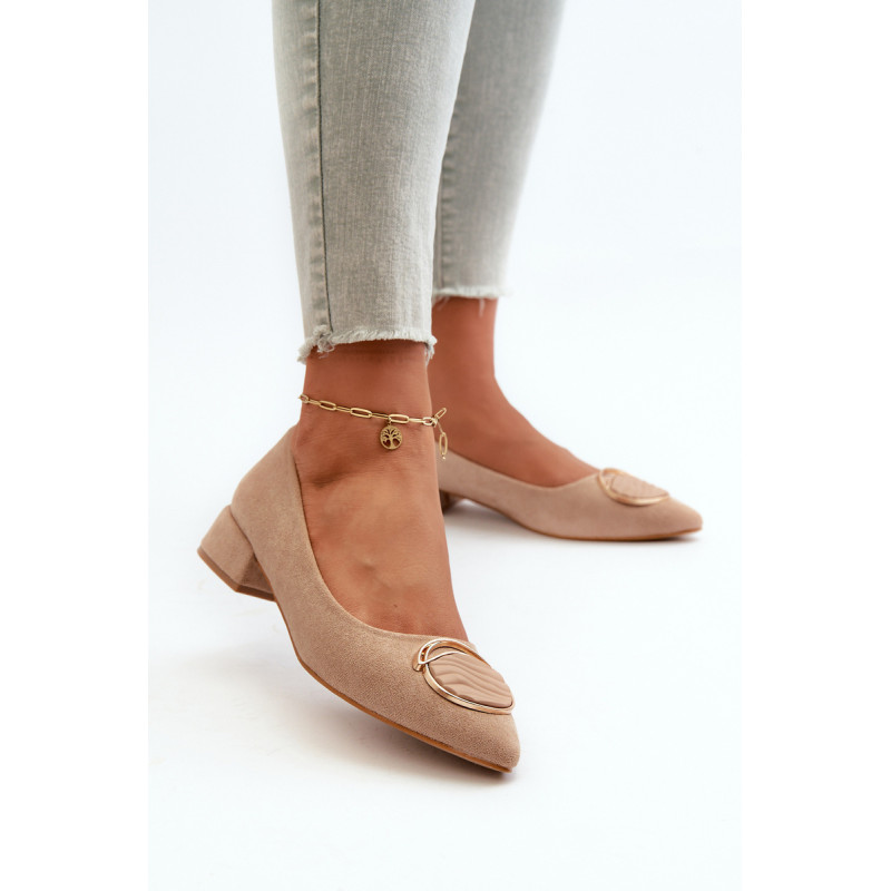 Elegantiški siurbliai, pagaminti iš aukštos kokybės ekologiškos zomšos. Nustatykite ant žemo, stabilaus kulno. Smailūs pirštai vizualiai pailgina kojas. Priekinė apdaila suteikia elegancijos, pritraukia dėmesį. Minkštas odinis vidpadis suteikia komforto kiekviename žingsnyje. Puikiai tinka tiek kasdieniam, tiek formalesniam stiliui. Rinkdamiesi dydį, žiūrėkite dydžių lentelę.