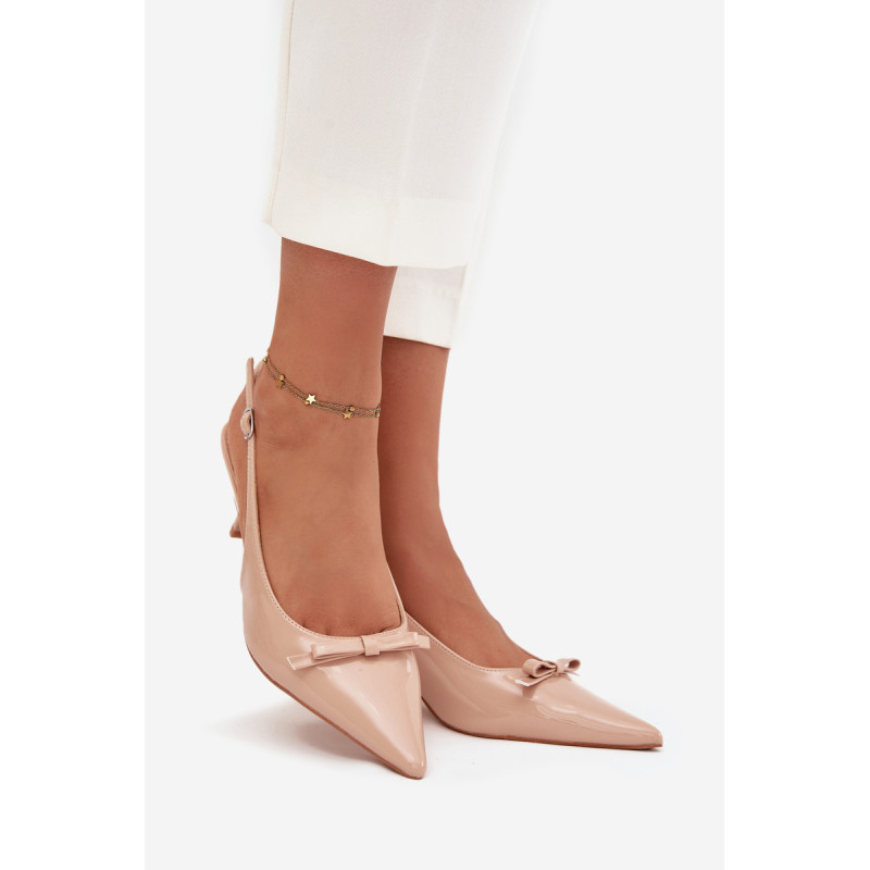Eleganti moteriški aukštakulniai, pagaminti iš ekologiškos odos, yra klasika moteriškame stiliuje. Plonas kulnas ir smailūs priekiniai galiukai gražiai ilgina kojas, o priekyje esanti kasytė suteikia batams subtilų žavesį. Modelis užsegamas sagtimi su reguliuojamu dirželiu, užtikrinančiu gerą prigludimą ir patogumą. Puikiai tinka tiek elegantiškoms aprangoms, tiek ypatingoms progoms. Rinkdamiesi dydį, vadovaukitės dydžių lentele. Renkantis dydį, vadovaukitės dydžių lentele.