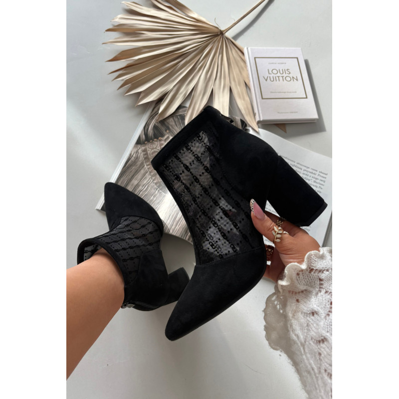 Moteriški auliniai batai, pagaminti iš ekologiško zomšos ir tinklo, yra modelis, sukurtas ypatingoms progoms. Smailios nosys pabrėžia moterišką charakterį, o stulpelio formos kulnas prideda elegancijos ir vizualiai lieknina siluetą. Uždarymas užtrauktuku užpakalinėje liežuvėje užtikrina patogumą ir šiuolaikišką išvaizdą. Kvėpuojantis tinklas, sujungtas su subtiliu zomšos audiniu, sukuria originalią kompoziciją, kuri puikiai tinka vakariniams stiliams. Tai yra idealūs batai išėjimams, susitikimams ar vakarėliams, kurie taps išskirtiniu elegantiško aprangos papildymu. Renkantis dydį, prašome vadovautis dydžių lentele. Renkantis dydį, vadovaukitės dydžių lentele.