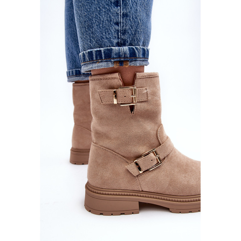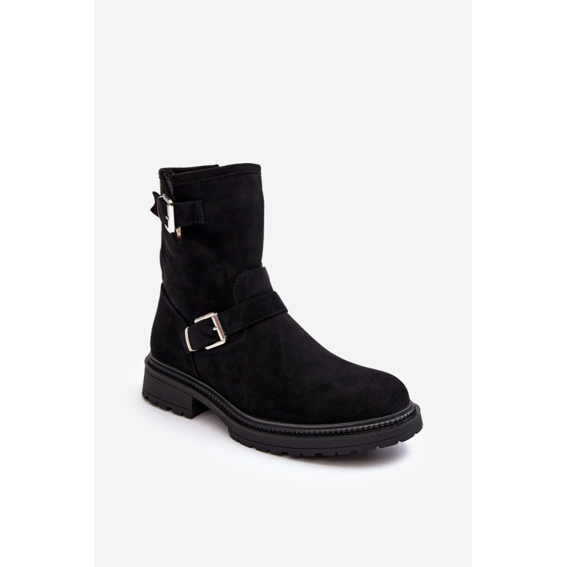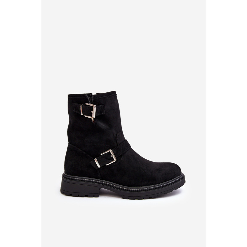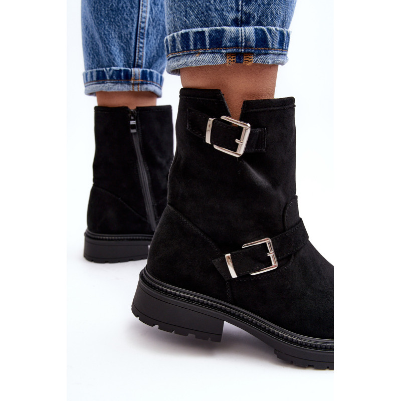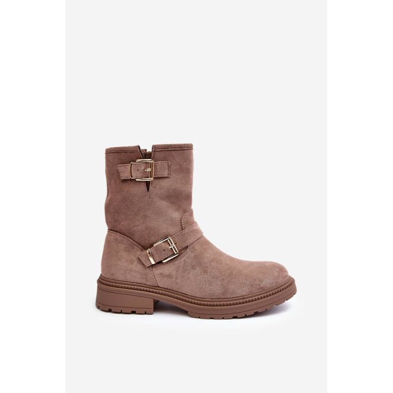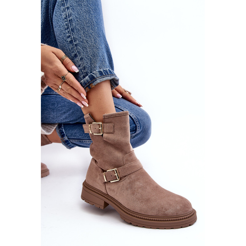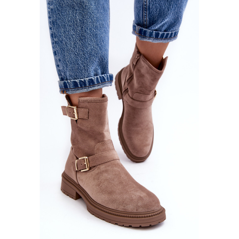 Klasikiniai moteriški kulkšnies batai su kotu. Nustatykite ant plokščio kulno. Šone užsegamas užtrauktuku. Suapvalinti kojų pirštai. Sustingęs skaitiklis. Kotas dekoruotas dirželiais su sagtimi. Minkštas eko odos vidpadis suteiks komforto naudojimo metu. Puikiai tiks prie daugelio rudens drabužių! Renkantis dydį, vadovaukitės dydžių lentele.