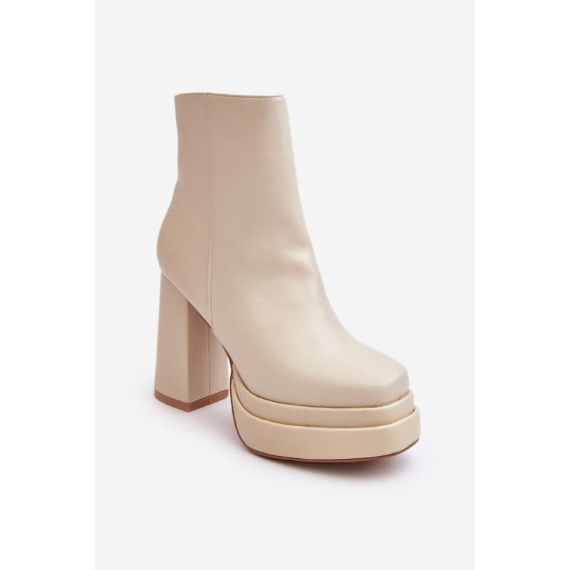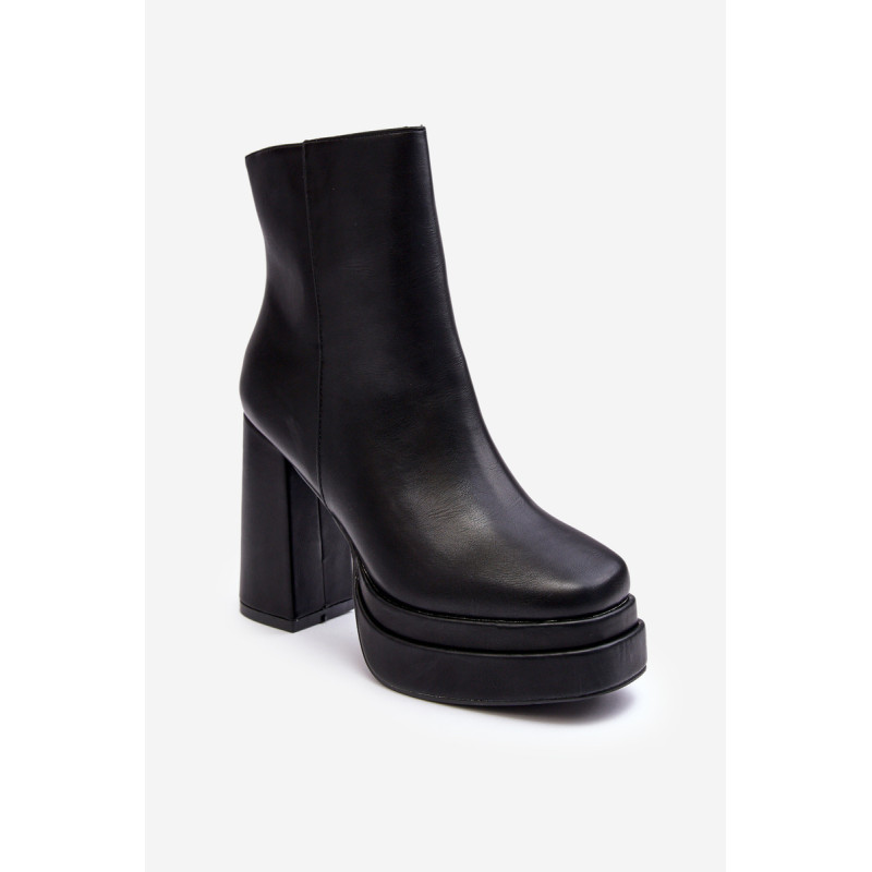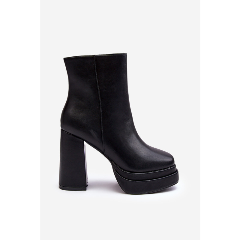 Masyvūs moteriški batai iš ekologiškos odos. Nustatyti ant aukšto kulno stulpelio ir platformos pavidalu. Kvadratiniai kojų pirštai. Kojos pirštas sustingęs. Šis modelis šone užsegamas užtrauktuku. Šie batai puikiai tiks prie rudens aprangos. Rinkdamiesi dydį, vadovaukitės dydžių lentele.