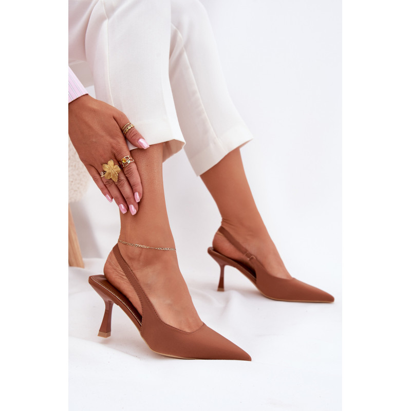 Moteriški sandalai iš ekologiškai pagamintos odos su žemu kulnu yra elegantiškas pasirinkimas ypatingoms progoms. Smailūs pirštai suteikia jiems lieknumo, o subtilus kaspinas priekyje suteikia moteriško žavesio. Stilingas ir elegantiškas jų įvaizdis daro šiuos sandalus puikiu pasirinkimu vakarėliams, vestuvėms ar kitoms šventėms. Renkantis dydį, vadovaukitės dydžių lentele.