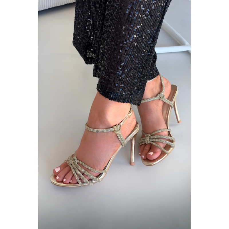 Moteriški vakariniai sandalai su aukštu kulnu yra išskirtinai elegantiškas pasirinkimas ypatingoms progoms. Plonas kulnas puikiai pabrėžia siluetą ir suteikia aprangai lengvumo, o subtilios juostelės, papuoštos žvilgančiais cirkonių akmenimis, patraukia dėmesį ir suteikia visumai juvelyrinį charakterį. Modelis su sagtimi ir reguliuojamu dirželiu leidžia puikiai pritaikyti sandalų prie pėdos ir užtikrina stabilumą vaikščiojant. Tai puikus pasirinkimas vakariniams pasivaikščiojimams, šventėms ir elegantiškiems renginiams, kai norite atrodyti įspūdingai. Rekomenduojame vadovautis dydžių lentele renkantis dydį. Renkantis dydį, vadovaukitės dydžių lentele.
