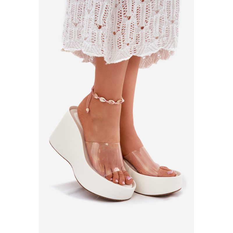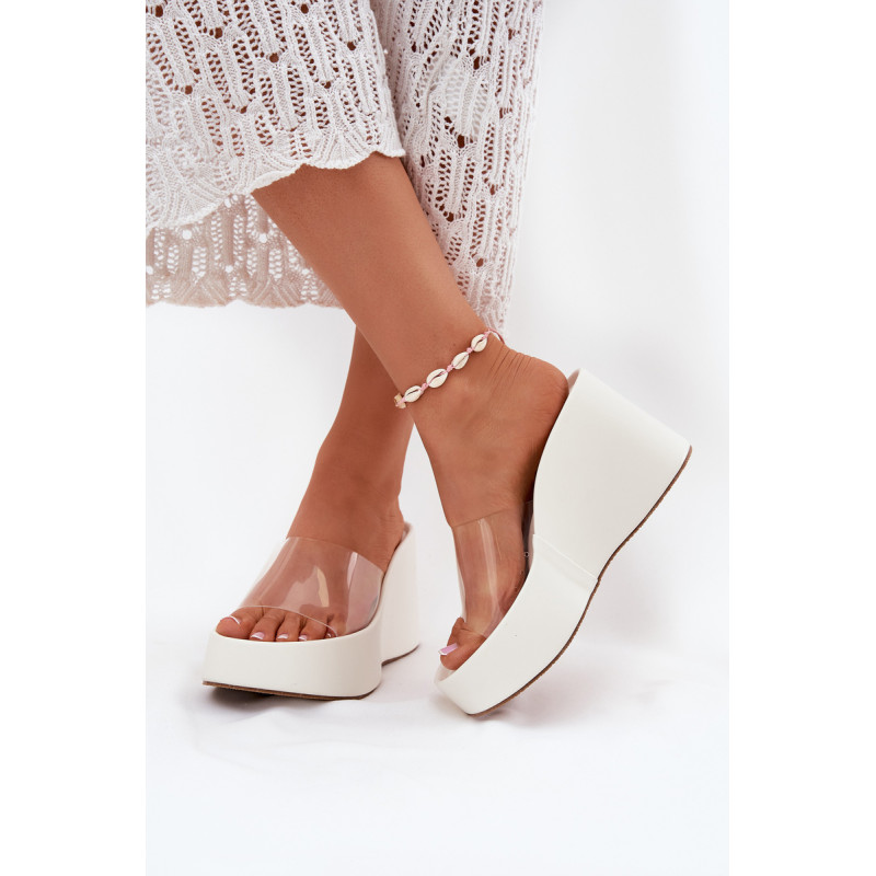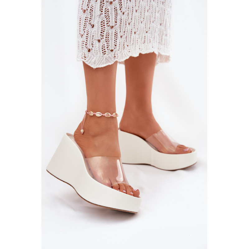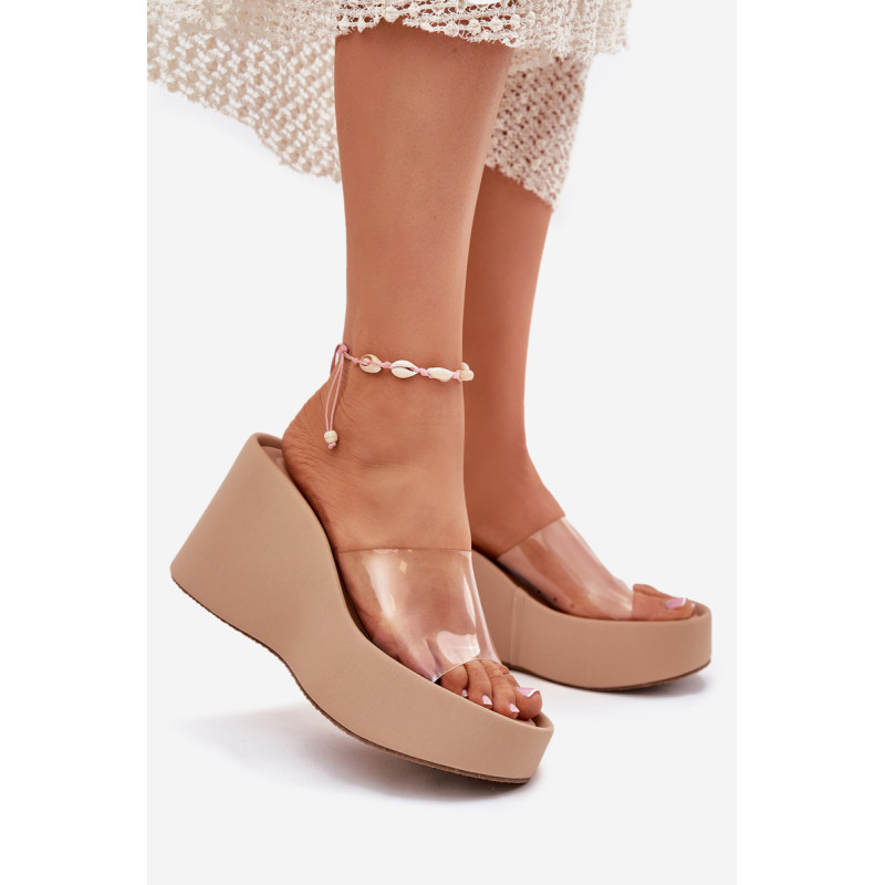 Moteriški šlepetės su skaidriu dirželiu yra stilingas pasirinkimas šiltoms dienoms. Įrengtos ant platformos, jos užtikrina komfortą ir stabilumą, tuo pačiu pridedant lengvumo ir stiliaus. Skaidrus dirželis suteikia joms modernų charakterį, puikiai derantį su vasaros suknelėmis ar kelnėmis. Idealiai tinka kasdieniam naudojimui ar vakariniams pasivaikščiojimams. Renkantis dydį, vadovaukitės dydžių lentele.