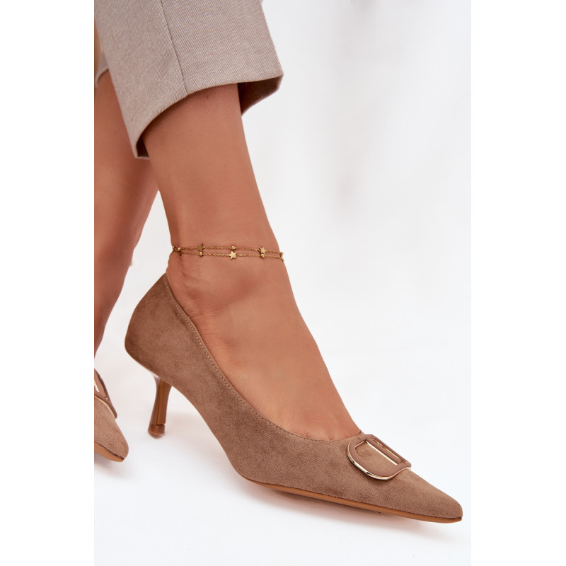 Moteriškos aukštakulnius iš ekologiško zomšos yra klasika, kuri niekada neišeina iš mados. Pagaminti iš malonios liesti, elegantiško medžiagos, jie puikiai pabrėžia moterišką stilių ir suteikia kiekvienai aprangai žavesio. Ploni, smaili nosys vizualiai ilginančias kojas, o subtili batų linija daro juos ypač lengvus ir grakščius. Dėl minkštos įdėklo aukštakulniai yra ne tik įspūdingi, bet ir patogūs – idealiai tinka tiek ypatingoms progoms, tiek kasdieniams elegantiškiems deriniams. Kulnas lieknina siluetą ir tuo pačiu užtikrina stabilumą vaikščiojant. Šie batai yra puikus pasirinkimas su suknelėmis, sijonais ar elegantiškais kelnais, puikiai tinka vakarėliams, vestuvėms, verslo susitikimams ar vakarinėms išvykoms. Renkantis dydį, vadovaukitės dydžių lentele.