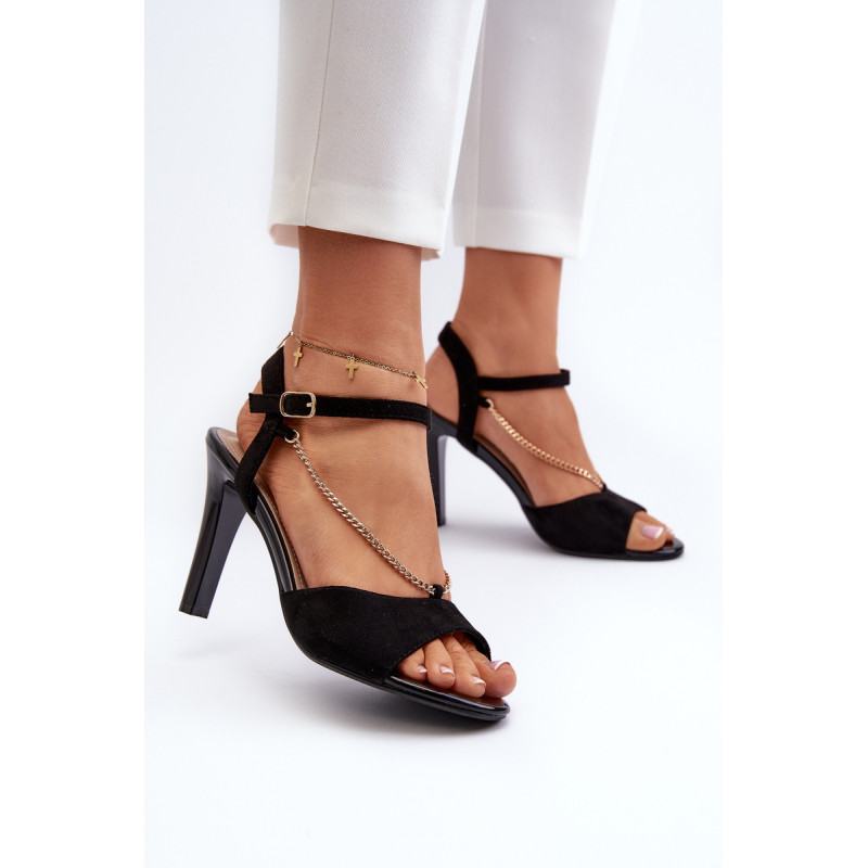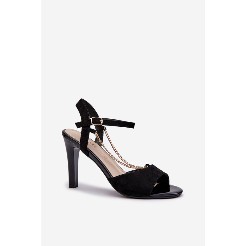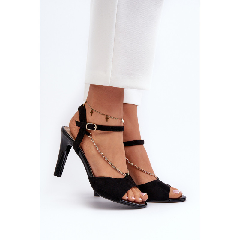 Moteriški basutės iš ekologiškos zomšos, puoštos grandinėle. Kulnas stileto formos. Dėl reguliuojamo dirželio su sagtimi juos lengvai priderinsite prie pėdos, užtikrinant patogumą dėvint. Šie sandalai yra puikus pasirinkimas įvairioms progoms, kiekvienai aprangai pridedant elegancijos ir stiliaus! Rinkdamiesi dydį, žiūrėkite dydžių lentelę.