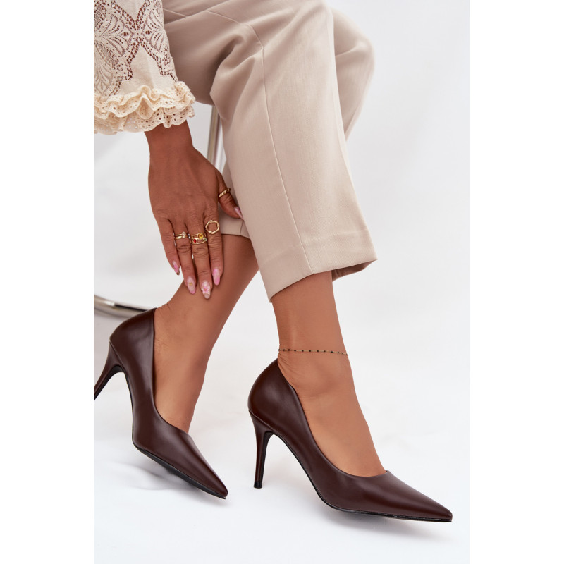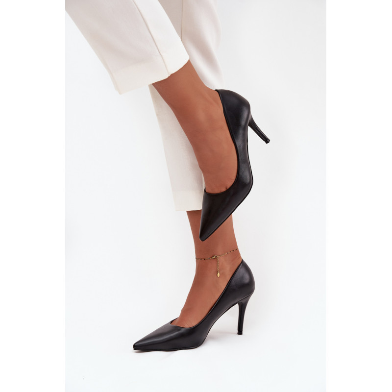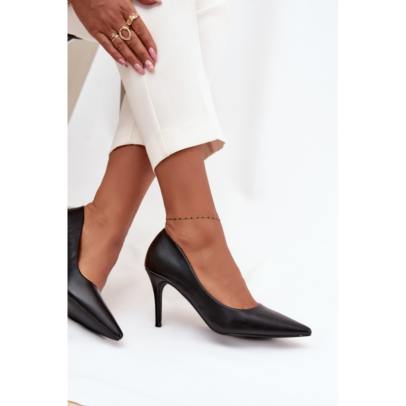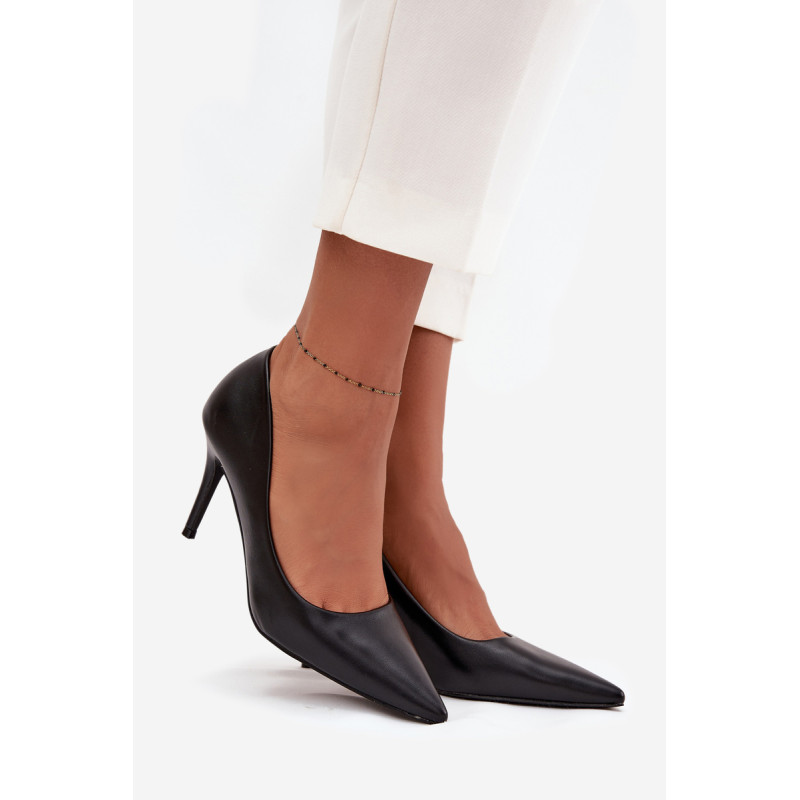 Moteriški aukšti kulniukai iš ekologiškos odos – klasika elegantiškoje išvaizdoje, tinkama tiek naudoti kasdien ir ypatingomis progomis. Plonas siluetas su smailais nosais gražiai išvysto koją ir suteikia švytėjimo silueto linijai, pabrėžiant moterišką charakterį. Šie batai puikiai papildys verslo aprangą, išryškins profesionalų įvaizdį ir taip pat puikiai tinka vakariniams ar ypatingiems ansambliams. Ekologiškos odos kulniukai – laikui nepavaldus pasirinkimas moterims, vertinančioms eleganciją, funkcionalumą ir klasikinį stilių. Renkantis dydį, prašome vadovautis dydžių lentele. Renkantis dydį, vadovaukitės dydžių lentele.