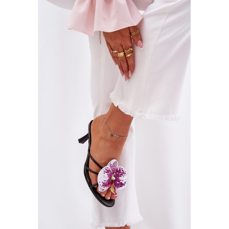 Moteriški šlepetės, pagamintos iš eko odos ant aukšto kulno, yra rafinuotas aksesuaras, kuris išskirs bet kurį stilių. Modelį puošia dirbtinė orchidėja, suteikianti jam išskirtinę žavesį ir moterišką eleganciją. Puikiai tinka vakariniams pasirodymams ir ypatingoms progoms, šios šlepetės pabrėš jūsų eleganciją ir unikalų stilių. Renkantis dydį, vadovaukitės dydžių lentele.