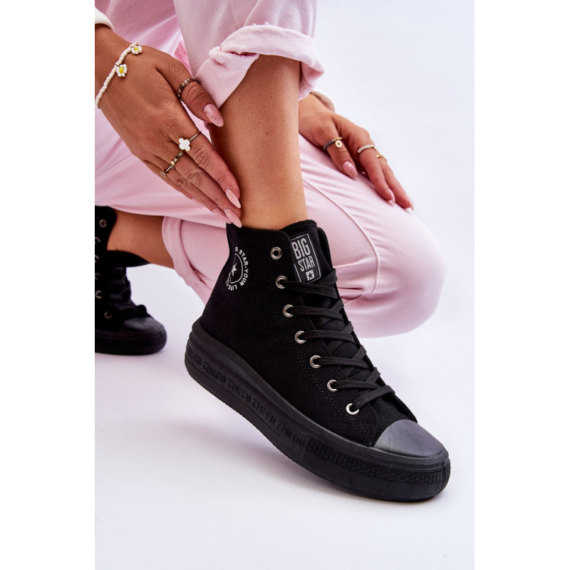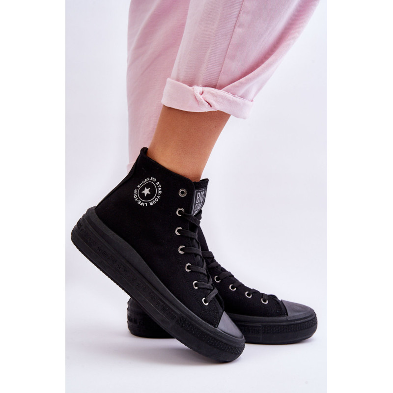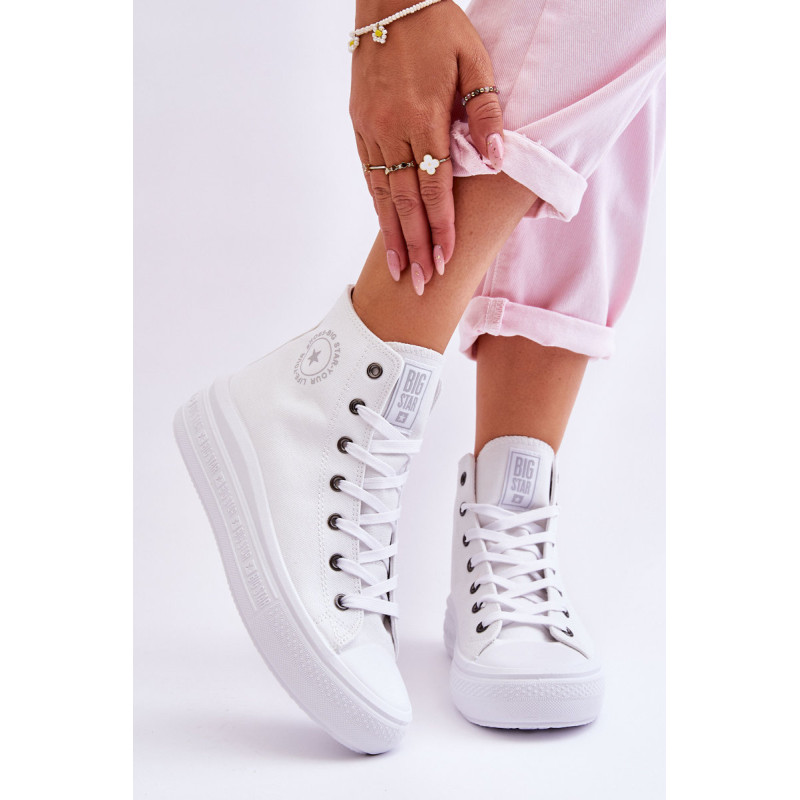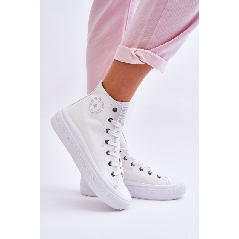 Moteriški aukšti sportbačiai pagaminti iš tekstilės. Šone ant viršaus yra dekoratyvinis Big Star prekės ženklo logotipas. Minkštas, medžiaginis vidpadis užtikrins komfortą naudojimo metu. Pastatoma ant subtilios platformos su neslidžiu padu. Klasikinis suvarstomas modelis. Būtinai peržiūrėkite visą mūsų BIG STAR batų kolekciją. Rinkdamiesi dydį, žiūrėkite dydžių lentelę.