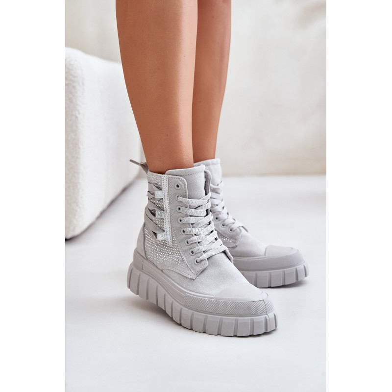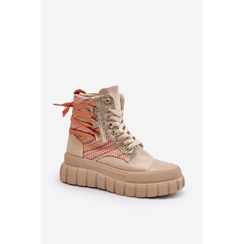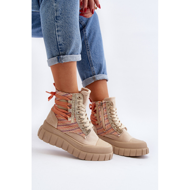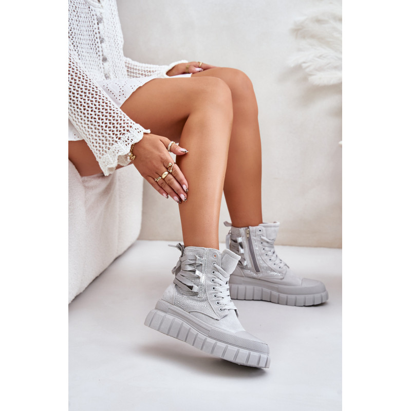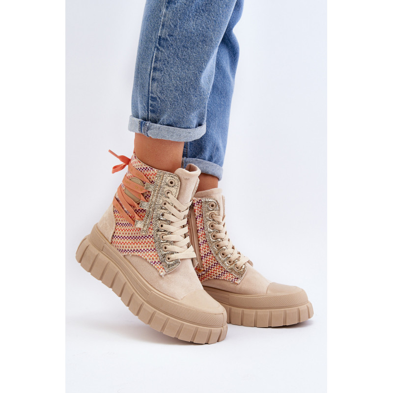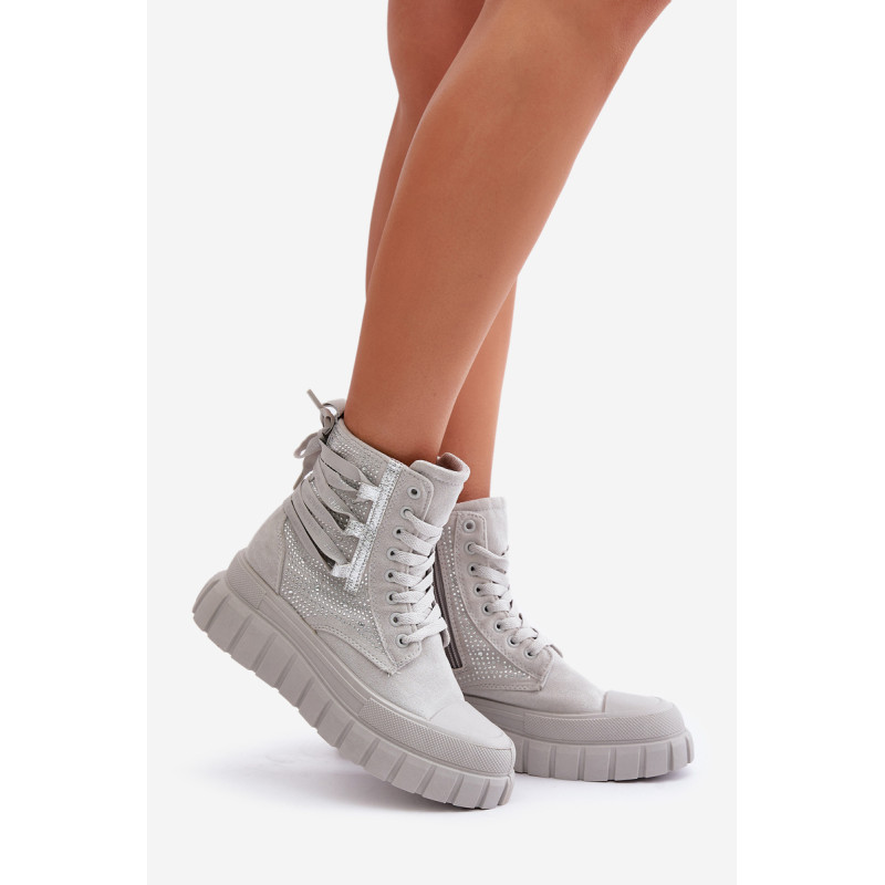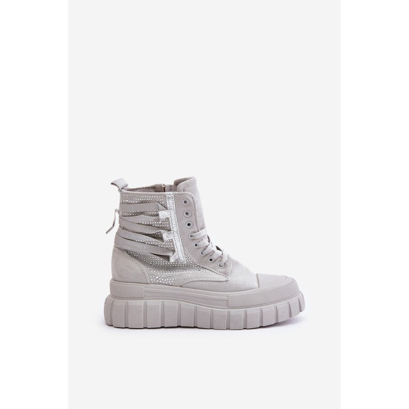 Aukštos kokybės moteriški sportbačiai, pagaminti iš ekologiškos zomšos ir tekstilės derinio. Jų masyvi platforma ir dvigubi raišteliai suteikia jiems šiuolaikišką išvaizdą, kuris puikiai dera su įvairiais stiliais. Papildomas užtrauktukas palengvina batų avimą. Absoliutus must have jūsų garderobe! Rinkdamiesi dydį žiūrėkite dydžių lentelę.