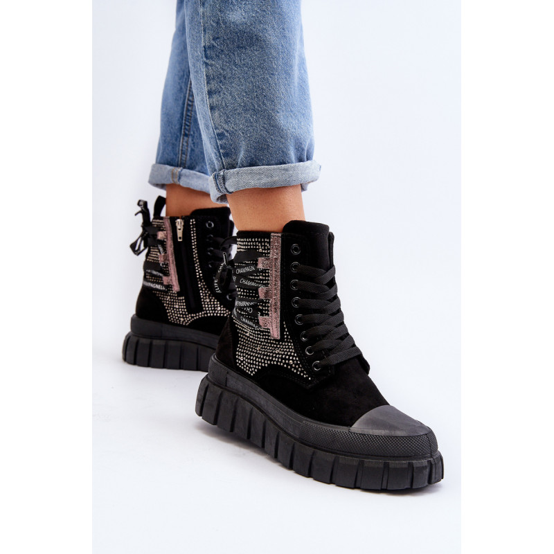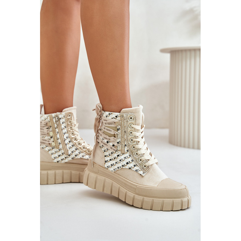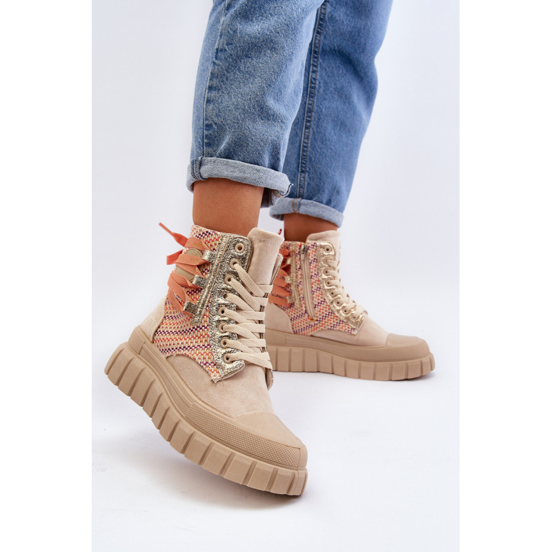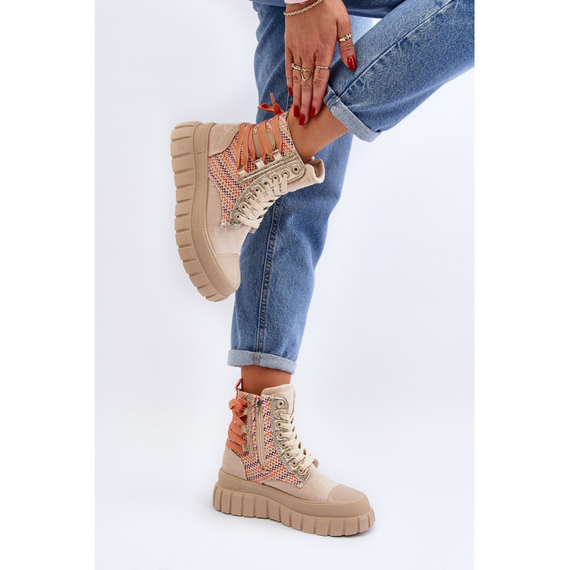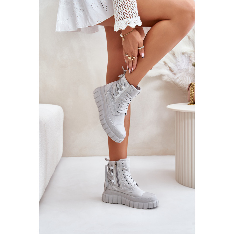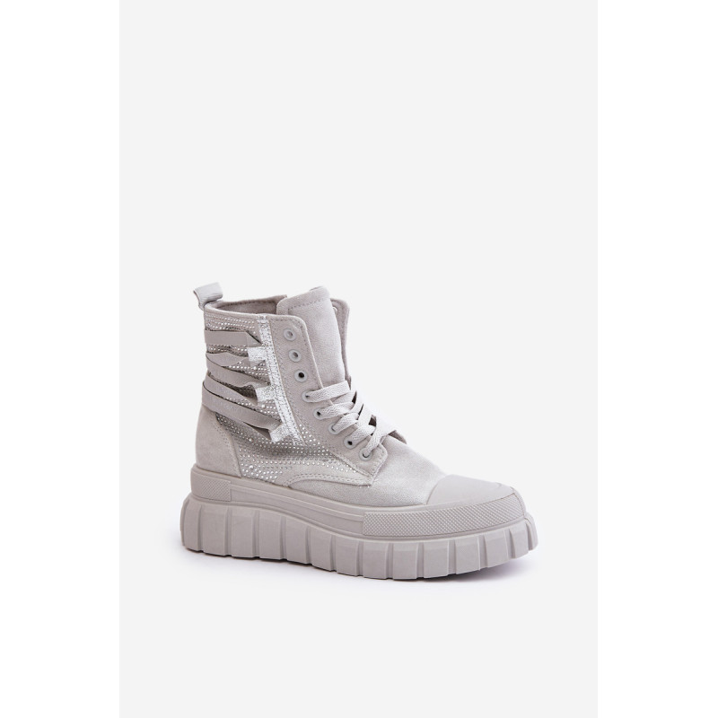 Aukštos kokybės moteriški sportbačiai, pagaminti iš ekologiškos zomšos ir tekstilės derinio. Jų masyvi platforma ir dvigubi raišteliai suteikia jiems šiuolaikišką išvaizdą, kuris puikiai dera su įvairiais stiliais. Papildomas užtrauktukas palengvina batų avimą. Absoliutus must have jūsų garderobe! Rinkdamiesi dydį žiūrėkite dydžių lentelę.