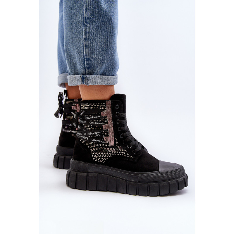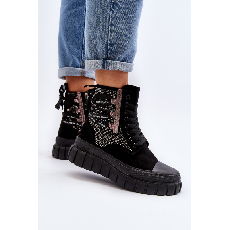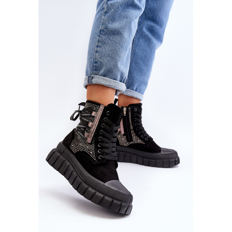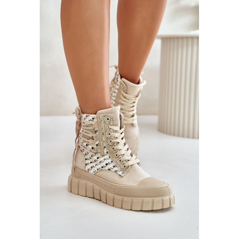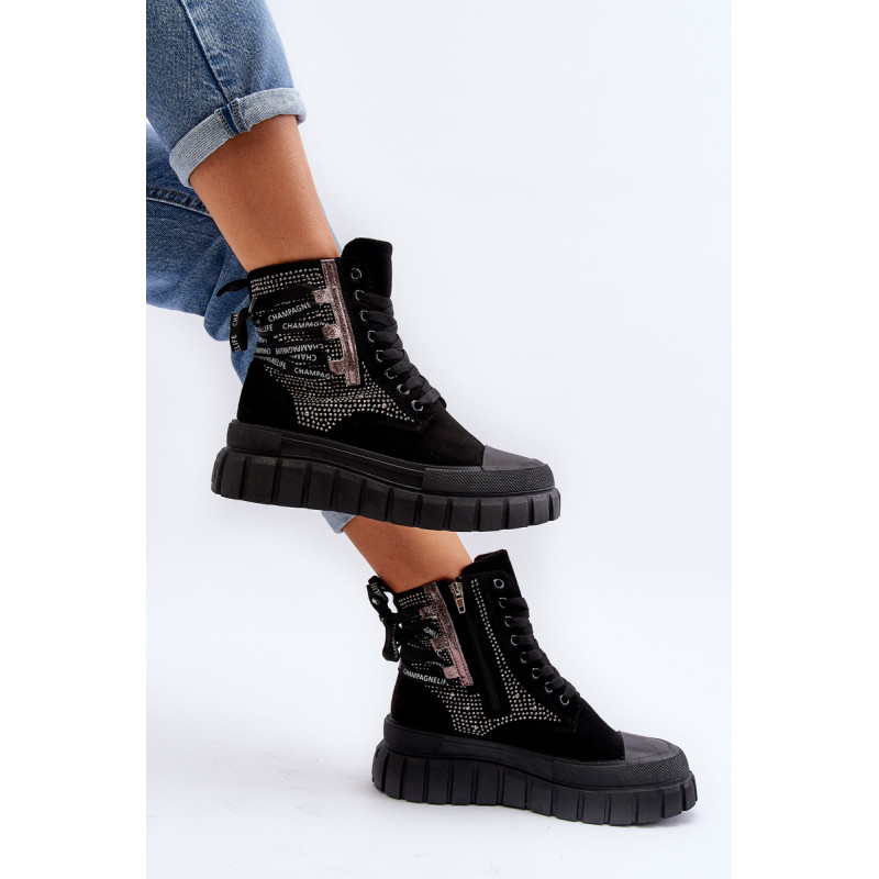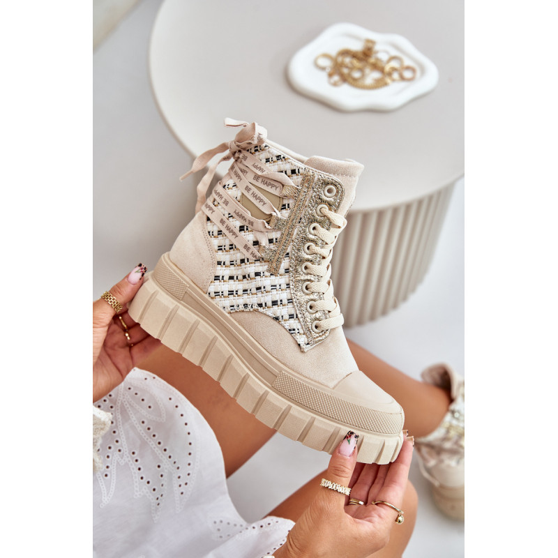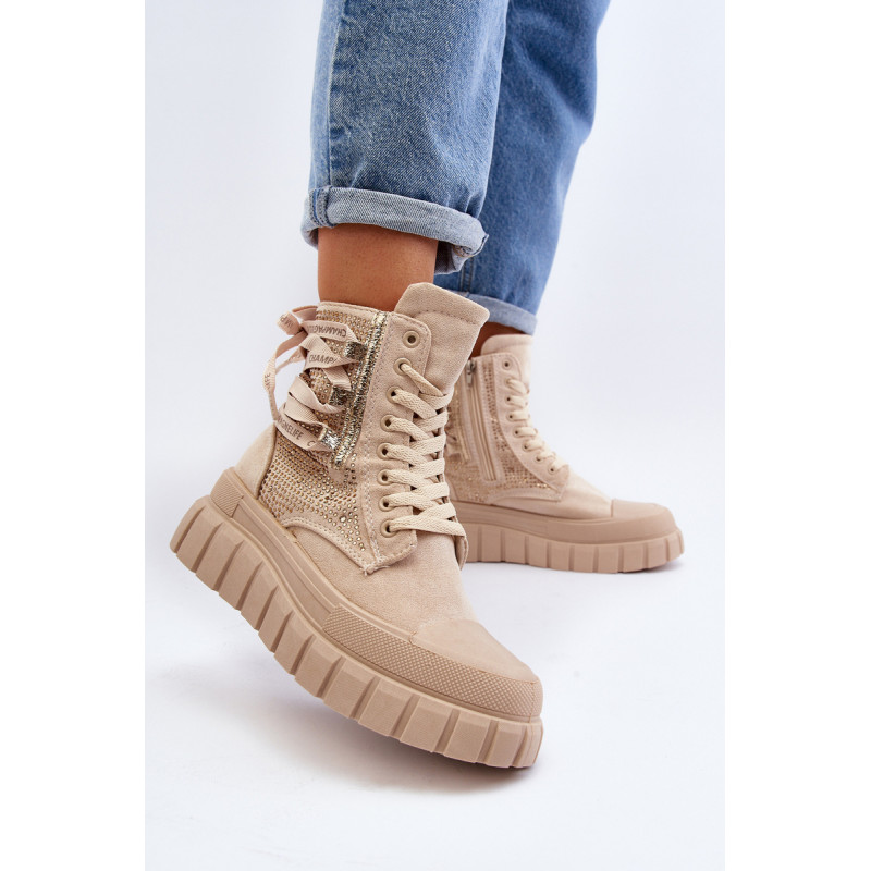 Aukštos kokybės moteriški sportbačiai, pagaminti iš ekologiškos zomšos ir tekstilės derinio. Jų masyvi platforma ir dvigubi raišteliai suteikia jiems šiuolaikišką išvaizdą, kuris puikiai dera su įvairiais stiliais. Papildomas užtrauktukas palengvina batų avimą. Absoliutus must have jūsų garderobe! Rinkdamiesi dydį žiūrėkite dydžių lentelę.