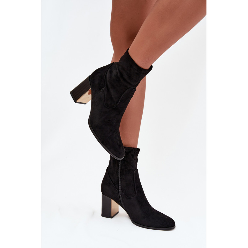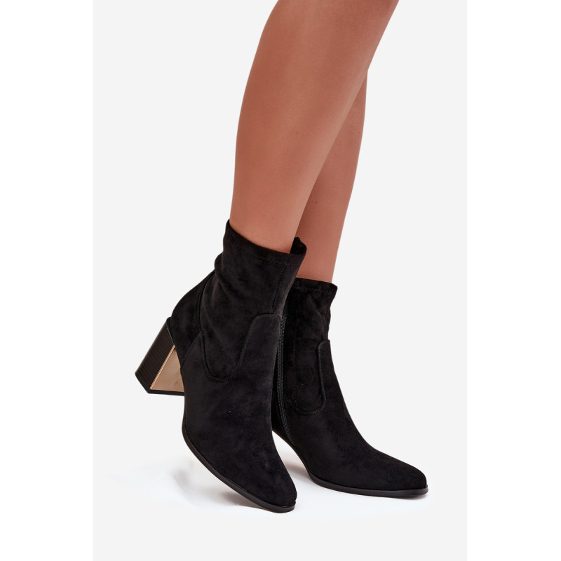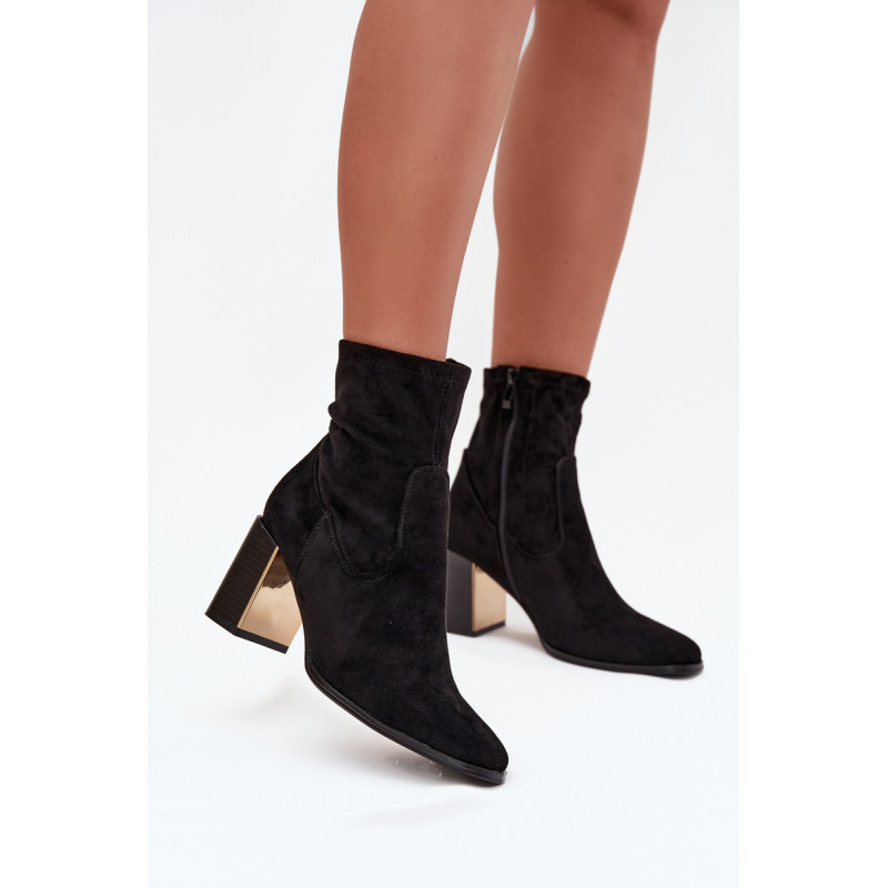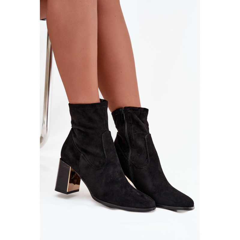 Moteriški ekologiški zomšiniai auliniai batai yra stilingas avalynės pasirinkimas vėsesnėmis dienomis. Patogus užsegimas su užtrauktuku palengvina užsimaukšlinimą, o šildomas vidus užtikrina šilumą ir komfortą. Modelis yra ant stabilios blokinės pakulnės, papuoštos auksiniu elementu, kuris prideda elegancijos ir pabrėžia modernų batų charakterį. Renkantis dydį, vadovaukitės dydžių lentele.