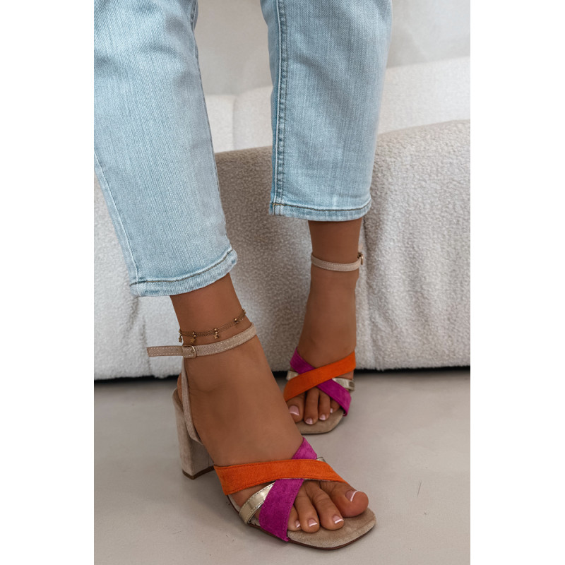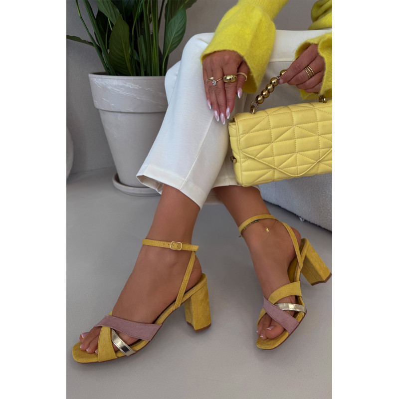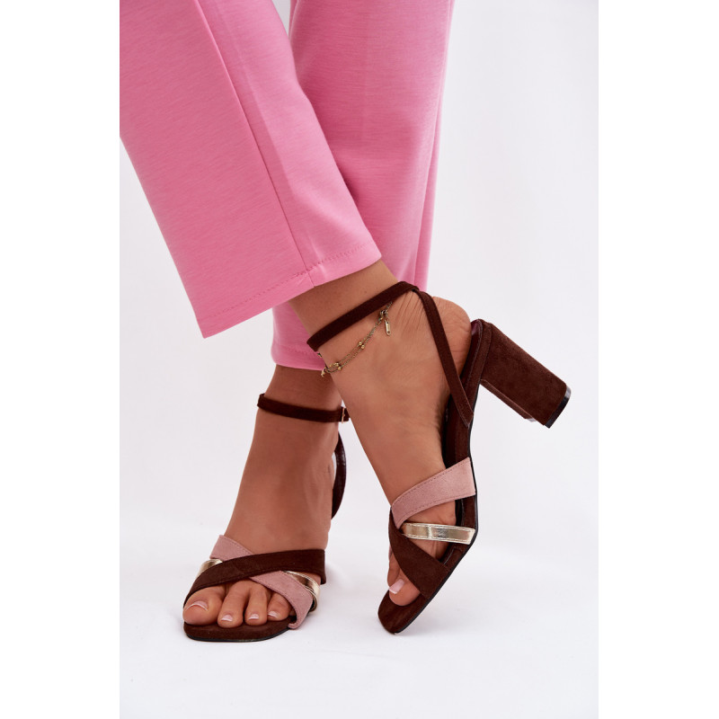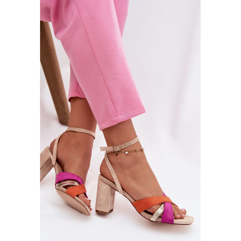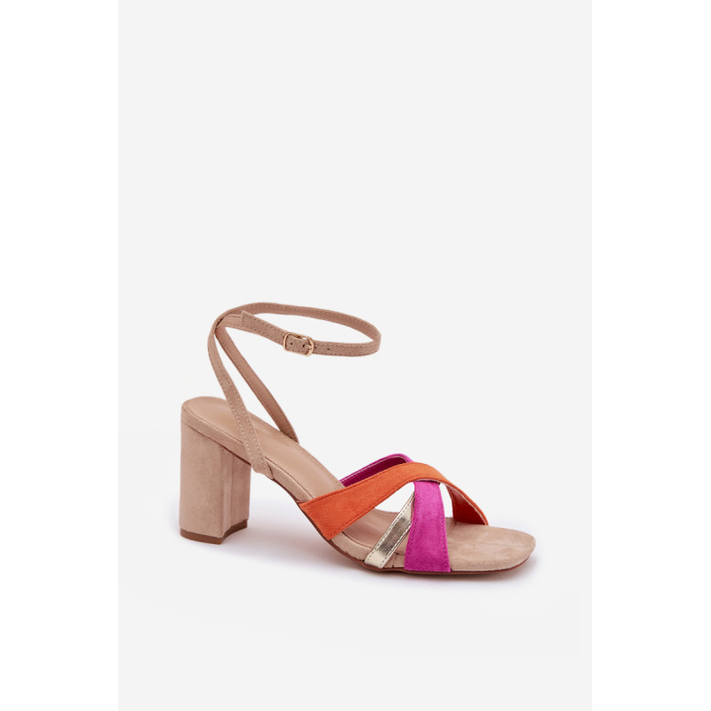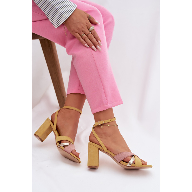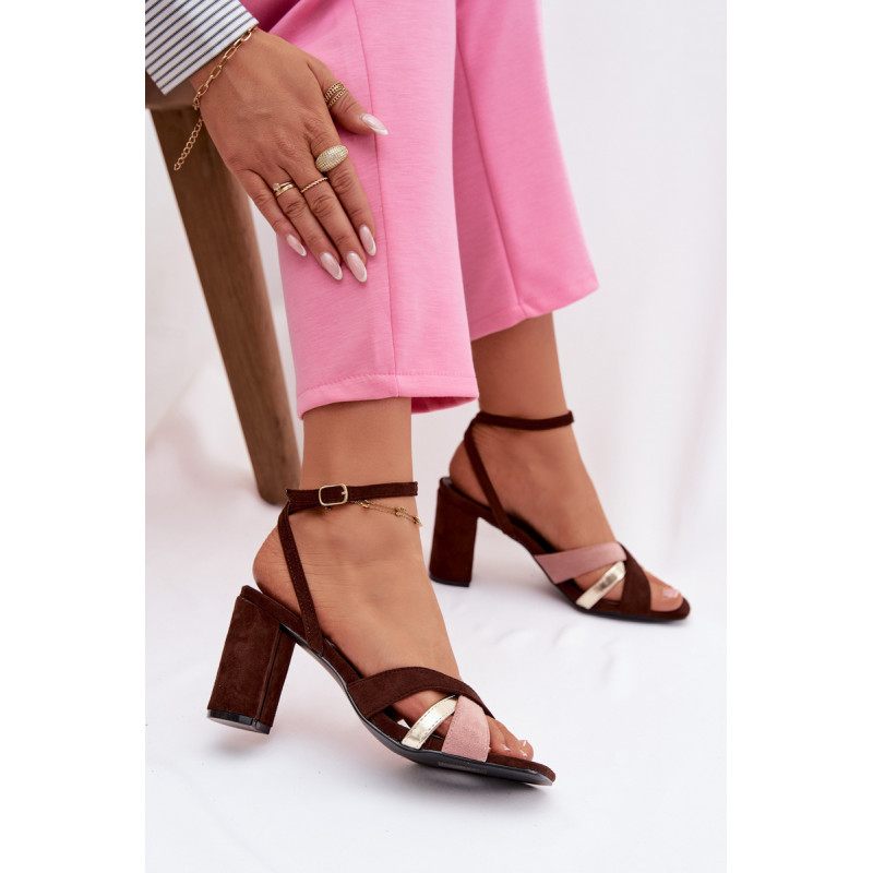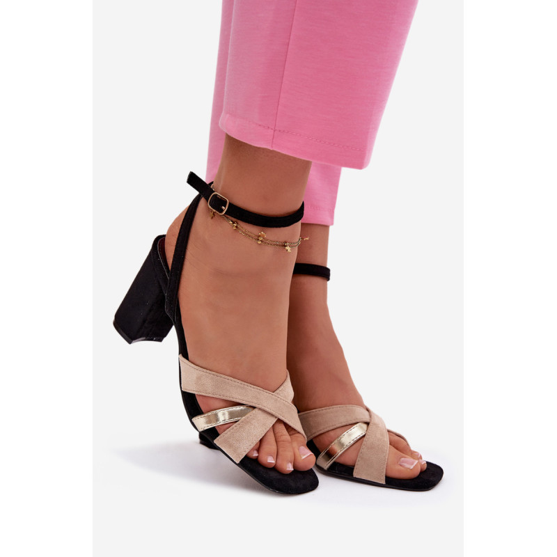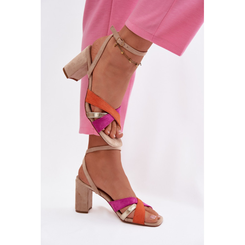 Stilingi moteriški sandalai iš ekologiško zomšiaus yra puikus pasirinkimas ypatingoms progoms. Sumontuoti ant stabilaus blokinio kulno, jie užtikrina patogumą ir komfortą net ilgų renginių metu. Trys subtilios juostos priekyje gražiai išryškina pėdą ir suteikia visumai elegantišką charakterį. Užsegimas su sagtimi leidžia pritaikyti prie pėdos. Šis modelis puikiai tinka įvairioms šventėms, iškilmėms ir vakarinėms išvykoms. Renkantis dydį, vadovaukitės dydžių lentele.