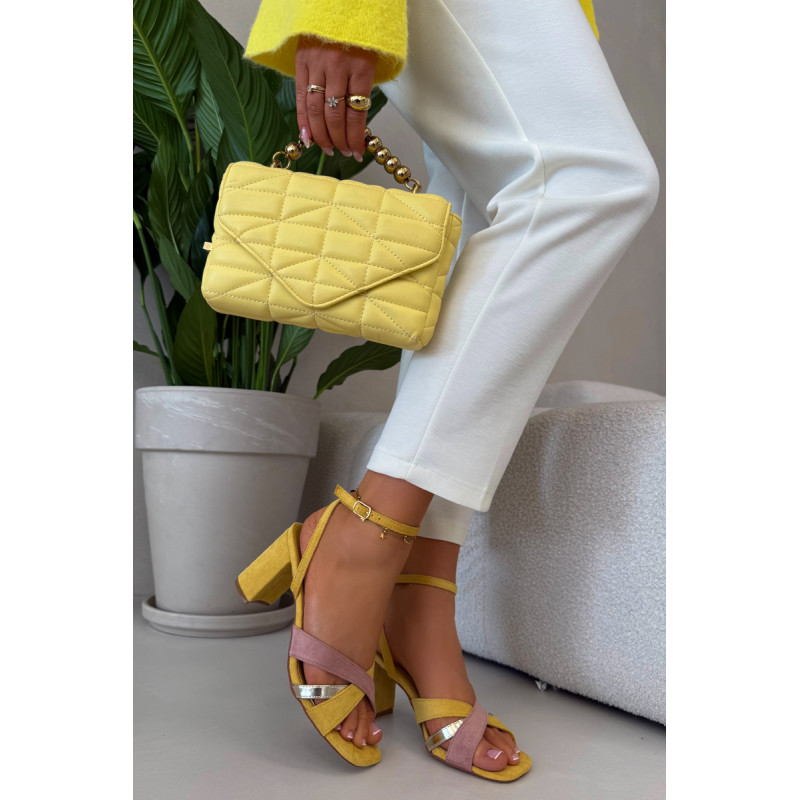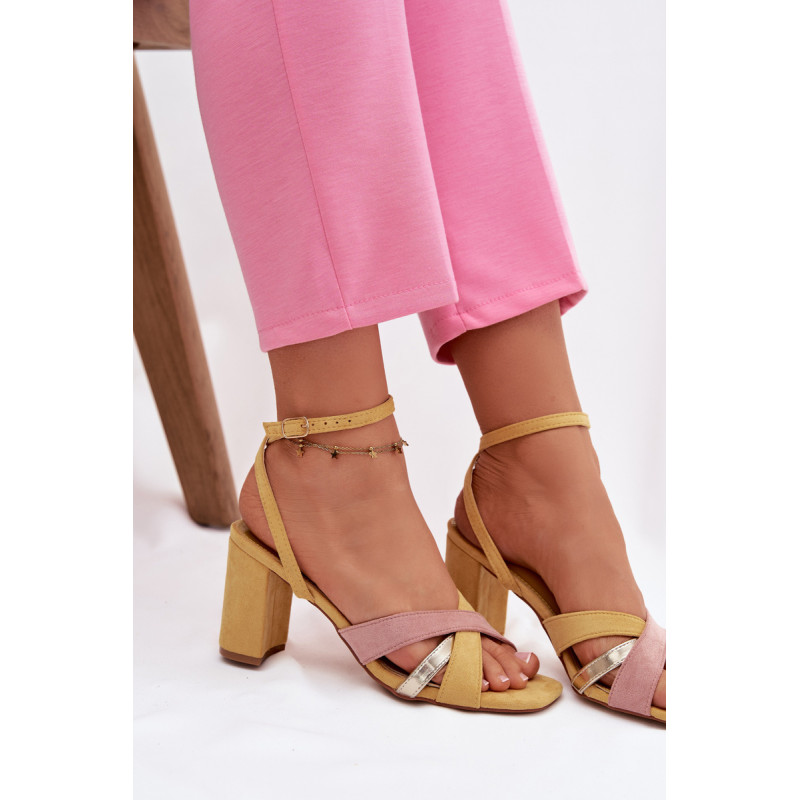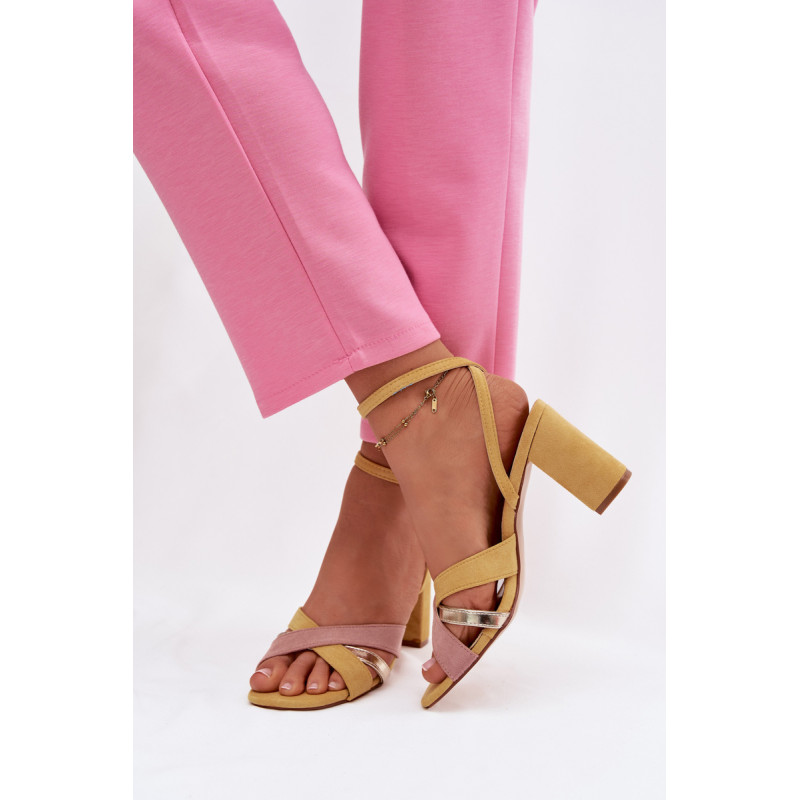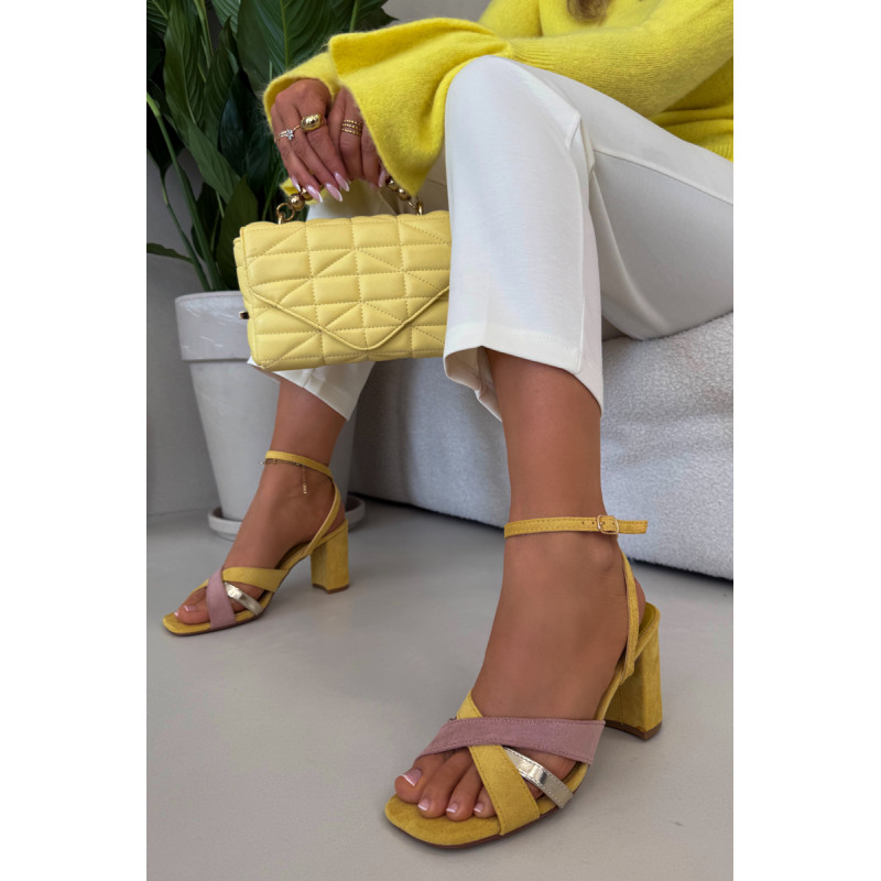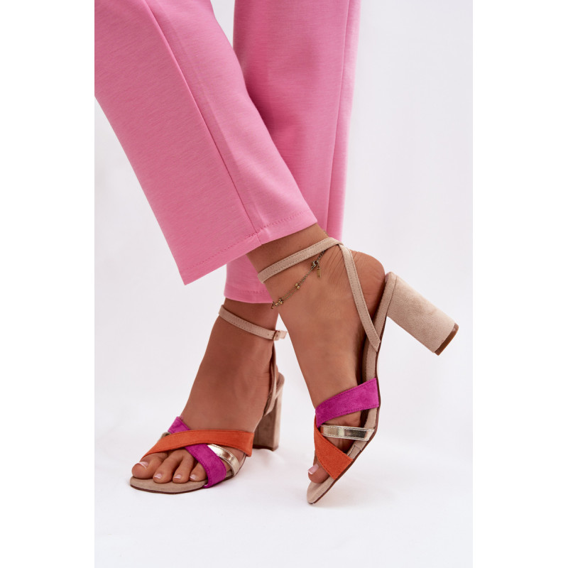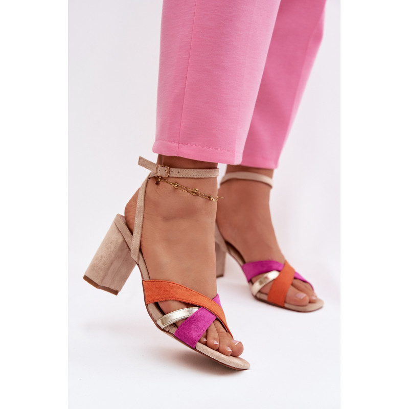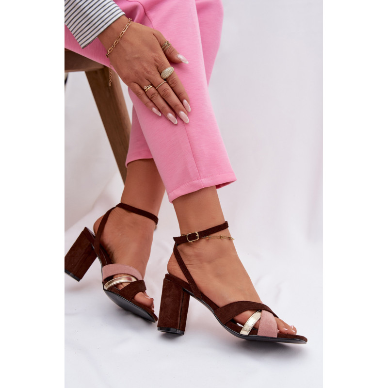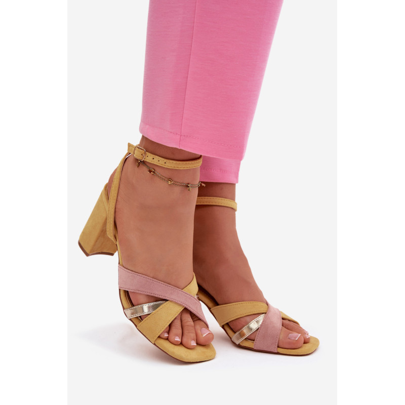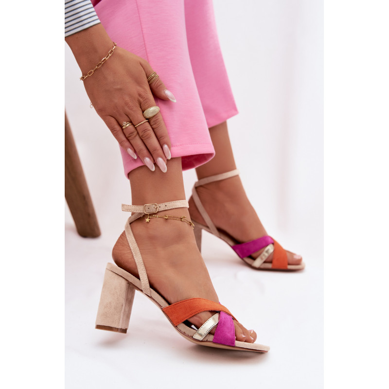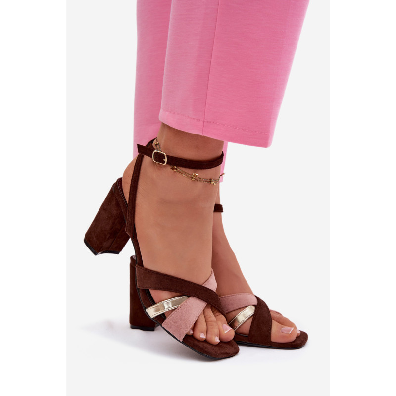 Stilingi moteriški sandalai iš ekologiško zomšiaus yra puikus pasirinkimas ypatingoms progoms. Sumontuoti ant stabilaus blokinio kulno, jie užtikrina patogumą ir komfortą net ilgų renginių metu. Trys subtilios juostos priekyje gražiai išryškina pėdą ir suteikia visumai elegantišką charakterį. Užsegimas su sagtimi leidžia pritaikyti prie pėdos. Šis modelis puikiai tinka įvairioms šventėms, iškilmėms ir vakarinėms išvykoms. Renkantis dydį, vadovaukitės dydžių lentele.