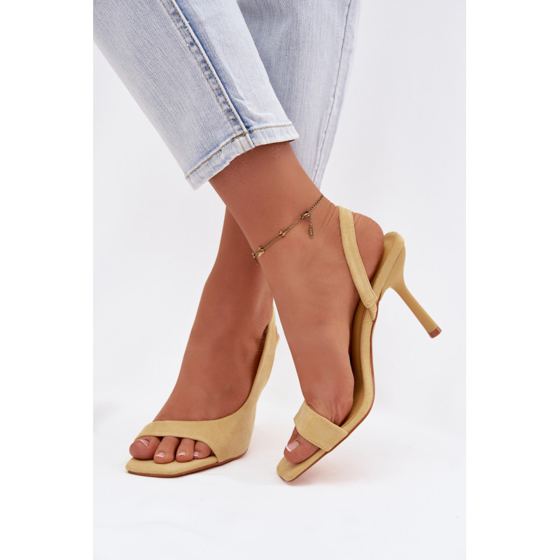 Eleganti moteriški sandalai iš eco zomšos yra puikus pasirinkimas vasaros išskirtinėms progoms, kai norite sujungti stilių su moteriška elegancija. Ant liekno stileto kulno, jie gražiai išilgina siluetą ir suteikia lengvumo kiekvienam įvaizdžiui. Šis modelis puikiai tinka vasaros išvykoms, vakarėliams, vestuvėms ar šventiniams susitikimams ir puikiai derinasi tiek su elegantiškomis suknelėmis, tiek su minimalistiniais stiliais. Tai pasiūlymas moterims, kurios nori atrodyti stilingai ir jaustis išskirtinai kiekvienos svarbios progos metu. Renkantis dydį, vadovaukitės dydžių lentele.