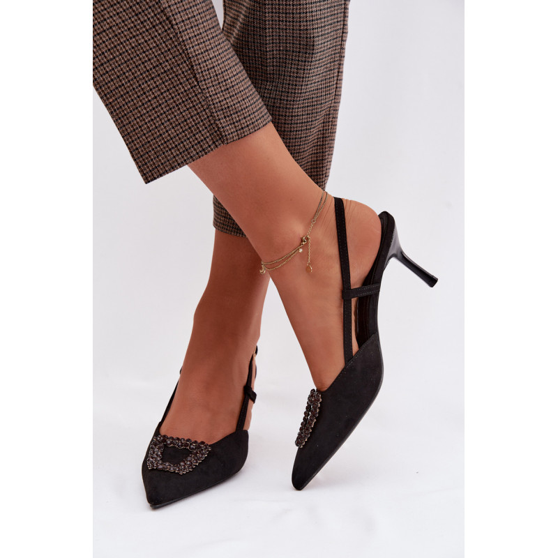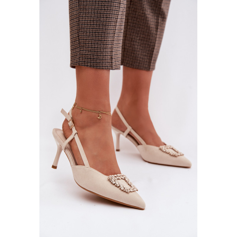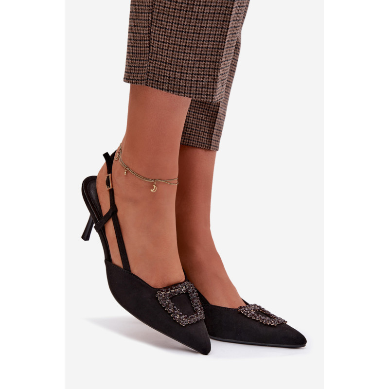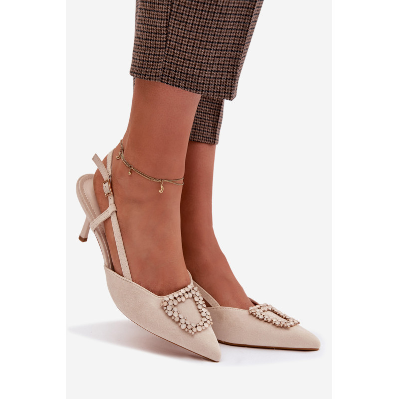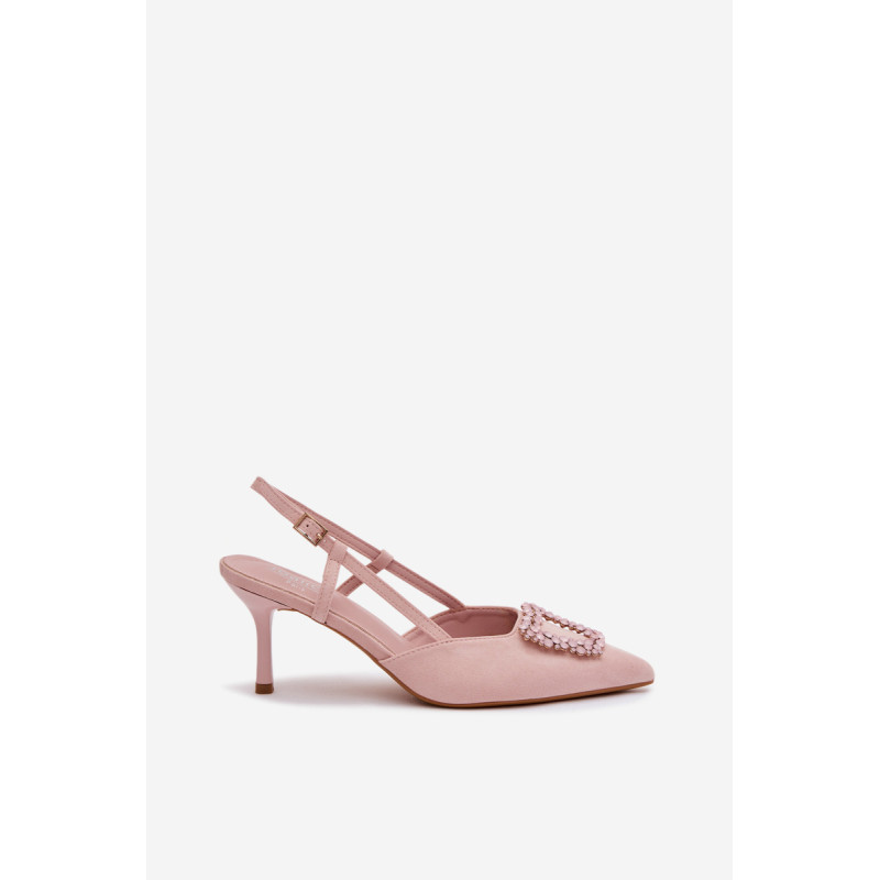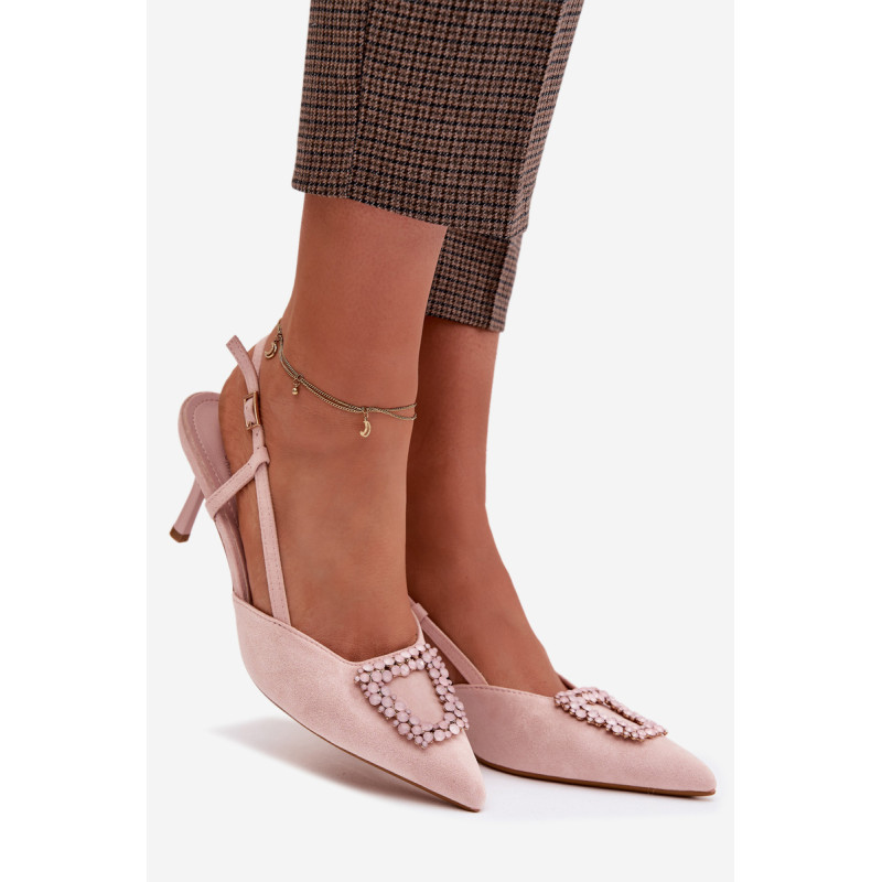 Eleganti moteriški sandalai iš eko zomšos yra stilingas pasirinkimas ypatingoms progoms. Plonas kulnas ir smailūs priekiniai kraštai gražiai ilginą siluetą ir suteikia bendram vaizdui moteriškumo. Dekoratyvinis detalė priekyje patraukia dėmesį ir pabrėžia modelio eleganciją. Reguliuojamas dirželio su sagtimi leidžia idealiai pritaikyti sandalų prie pėdos ir užtikrina patogumą. Šie sandalai puikiai tinka vakarėliams, šventėms ir vakarinėms išvykoms. Renkantis dydį, vadovaukitės dydžių lentele.