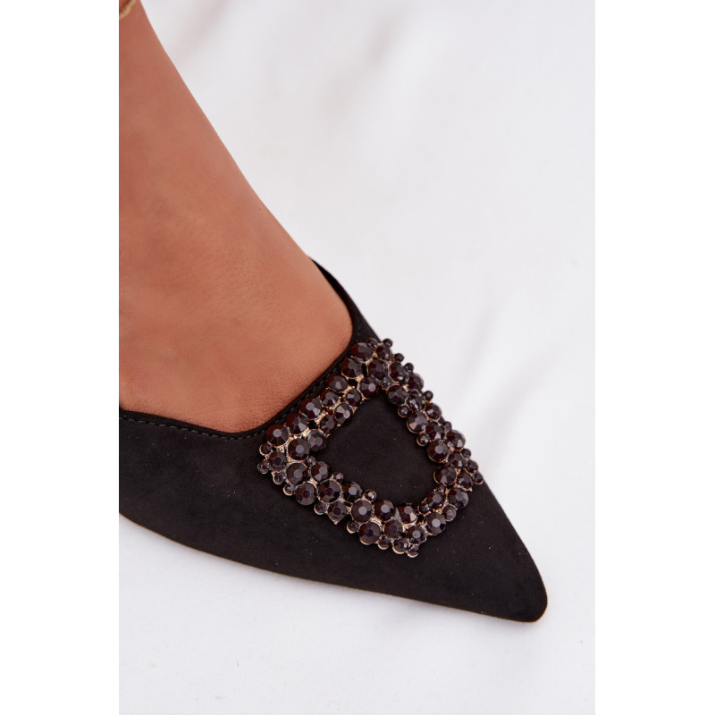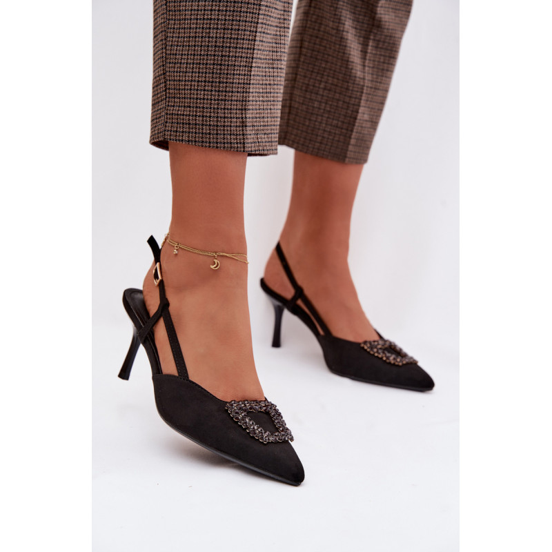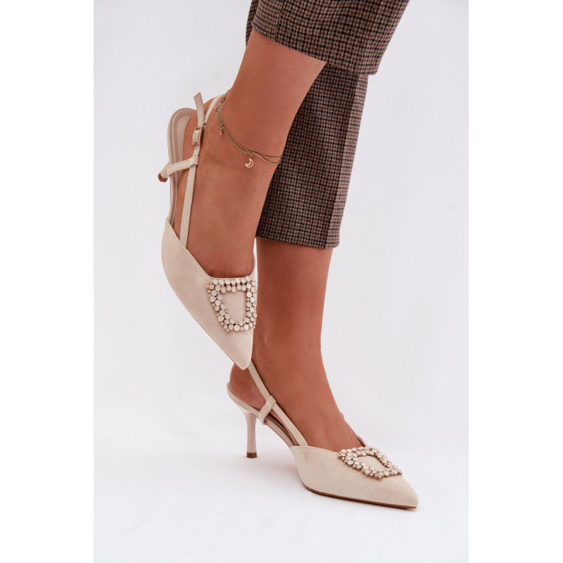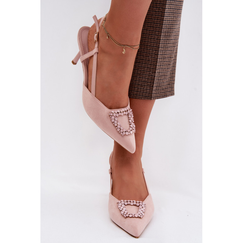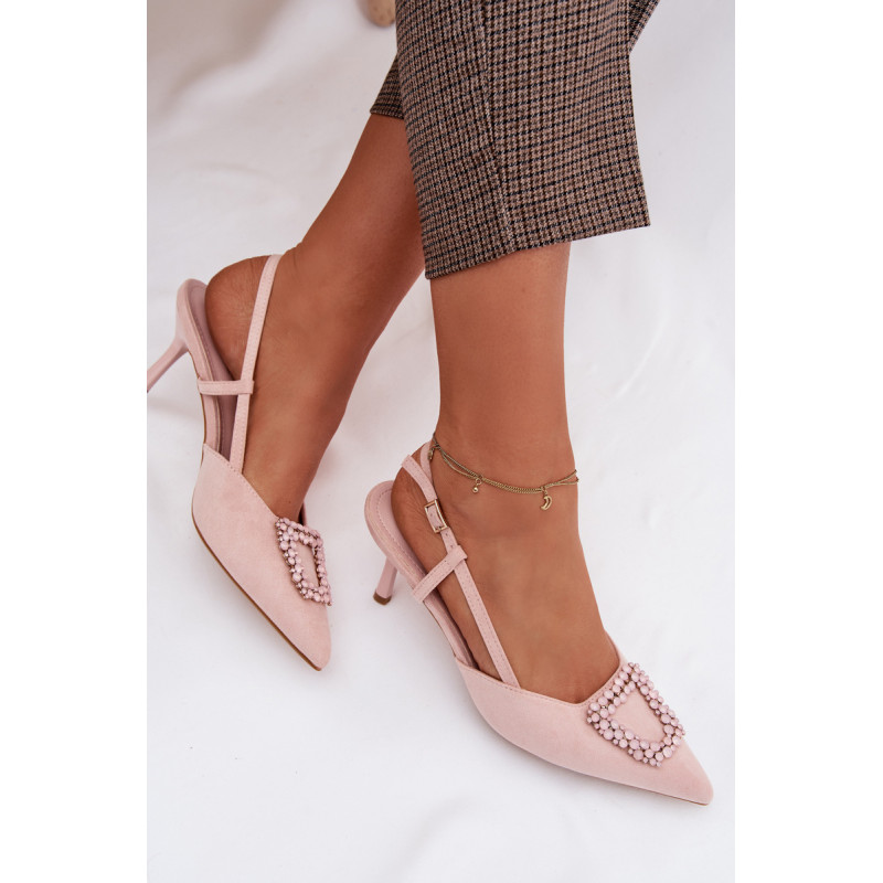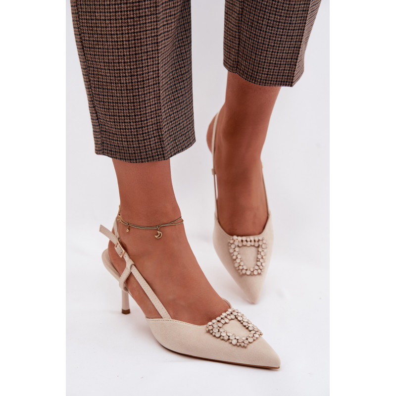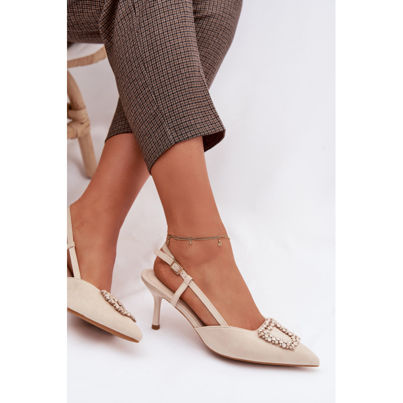 Eleganti moteriški sandalai iš eko zomšos yra stilingas pasirinkimas ypatingoms progoms. Plonas kulnas ir smailūs priekiniai kraštai gražiai ilginą siluetą ir suteikia bendram vaizdui moteriškumo. Dekoratyvinis detalė priekyje patraukia dėmesį ir pabrėžia modelio eleganciją. Reguliuojamas dirželio su sagtimi leidžia idealiai pritaikyti sandalų prie pėdos ir užtikrina patogumą. Šie sandalai puikiai tinka vakarėliams, šventėms ir vakarinėms išvykoms. Renkantis dydį, vadovaukitės dydžių lentele.