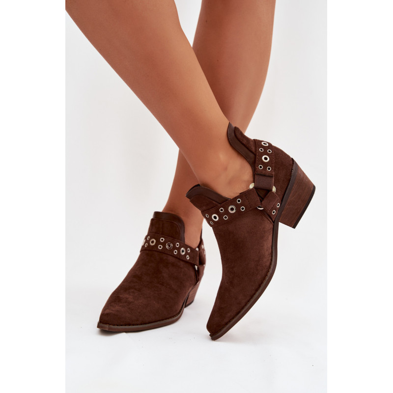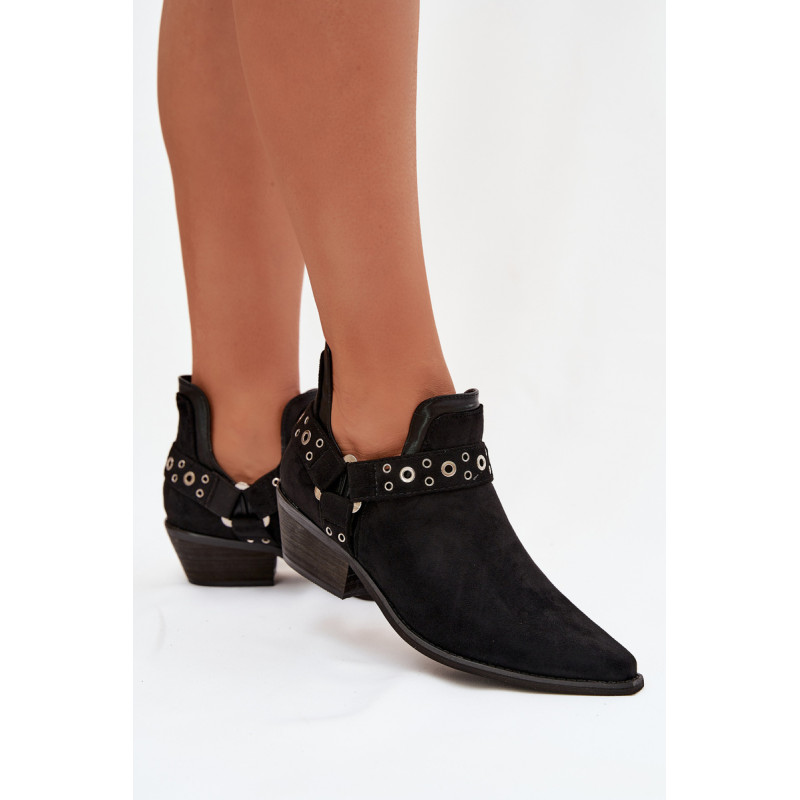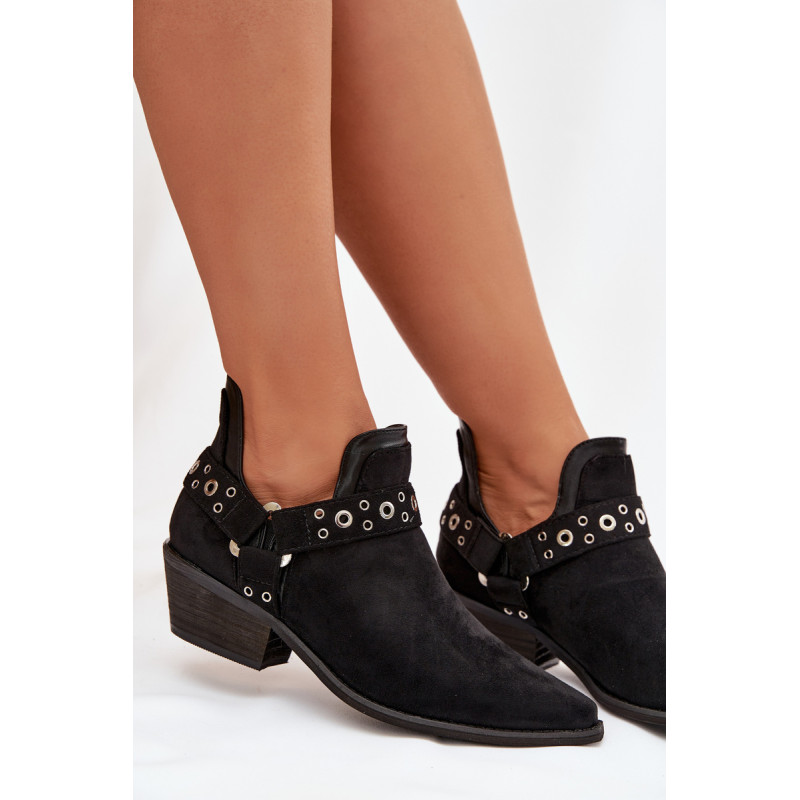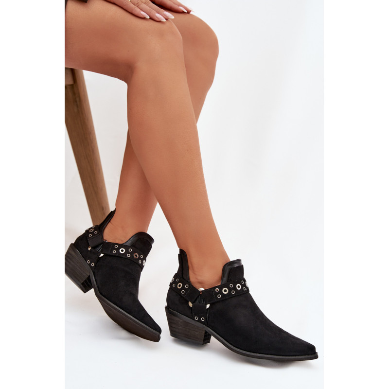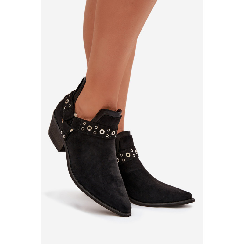 Stilingi moteriški aulinukai pagaminti iš ekologiško zomšos. Pastatyti ant žemo, kirpimo kulno, jie užtikrina stabilumą ir patogumą dėvint, o smaili nosys vizualiai ilginant koją. Viršutinė dalis su dekoratyvinėmis juostomis ir įspūdingais iškirpimais suteikia madingą ir originalų charakterį. Užsegimo modelis leidžia greitai užsidėti, todėl šie aulinukai puikiai tinka tiek kasdieniams, tiek ir elegantiškiems stiliams. Renkantis dydį, vadovaukitės dydžių lentele.