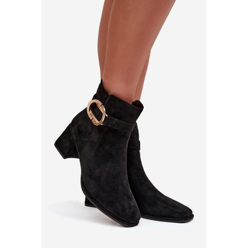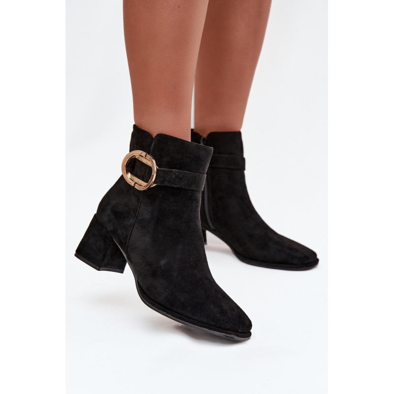 Moteriški ekostambukai yra stilingas pasirinkimas vėsesnėmis dienomis. Jie yra stabilios kulno formos, užtikrinančios patogumą ir subtiliai išryškinančios siluetą. Šoninė užtrauktukas palengvina užsidėjimą ir nusirengimą, o auksinė sagtelė ant dirželio suteikia elegancijos. Šiek tiek apvalūs priekiniai galiukai. Šis modelis tiks daugeliui stilių – tiek kasdieniams, tiek elegantiškiems. Rinkdamiesi dydį, vadovaukitės dydžių lentele. Renkantis dydį, vadovaukitės dydžių lentele.
