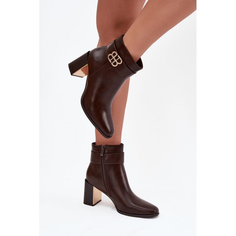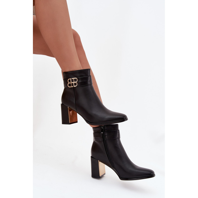 Moteriški botai, pagaminti iš ekologiškos odos. Modelis yra ant stabilios kulno formos, papuoštas auksiniu, veidrodiniu elementu, kuris suteikia išskirtinumo. Batai užsegami užtrauktuku, kas užtikrina patogumą užsidėgant ir tobulą pritaikymą. Viršutinė dalis puošia dekoratyvinis diržas su detale, kuris yra subtilus ir stilingas akcentas. Tai universali avalynė, kuri puikiai tiks tiek elegantiškoms, tiek kasdienėms stilizacijoms. Renkantis dydį, prašome vadovautis dydžių lentele. Renkantis dydį, vadovaukitės dydžių lentele.