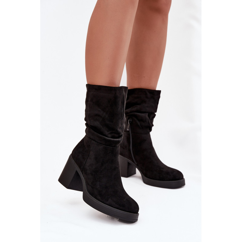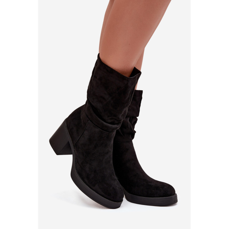 Moteriški ankliniai batai, pagaminti iš ekologiško zomšos. Modelis išsiskiria raukšlėta viršutine dalimi, kuri suteikia madingą išvaizdą. Užsidėk ir išeik dizainas su papildomu užtrauktuku užtikrina patogumą uždedant. Batai yra ant stabilių kubinių kulnų, kurie garantuoja patogų vaikščiojimą ir subtiliai ilgina siluetą. Vidus, izoliuotas putplasčiu ir padengtas audiniu, suteikia šilumą šaltomis dienomis. Puikus pasirinkimas rudens-žiemos sezonui – universalūs ankliniai batai, tinkantys tiek kasdieniam, tiek elegantiškesniam stiliui. Renkantis dydį, prašome vadovautis dydžių lentele. Renkantis dydį, vadovaukitės dydžių lentele.