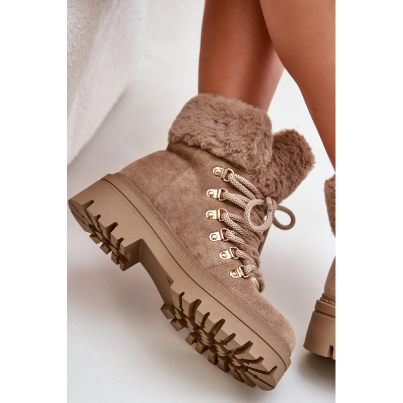Moteriški batai, pagaminti iš ekologiško zomšos, yra puikus pasirinkimas šaltoms dienoms. Šnuorų sistema leidžia tiksliai pritaikyti batus prie kojos, užtikrinant komfortą kasdieniam naudojimui. Vidaus pamušalas, šiltinamas batų vilna, garantuoja šilumą ir komfortą net šaltomis dienomis. Viršutinė dalis yra papuošta minkšta kailiu, kuris ne tik suteikia stilių, bet ir apsaugo nuo šalčio. Šie batai sujungia funkcionalumą ir madingą išvaizdą, idealiai tinkami tiek miesto stiliams, tiek žiemos pasivaikščiojimams. Renkantis dydį, vadovaukitės dydžių lentele.