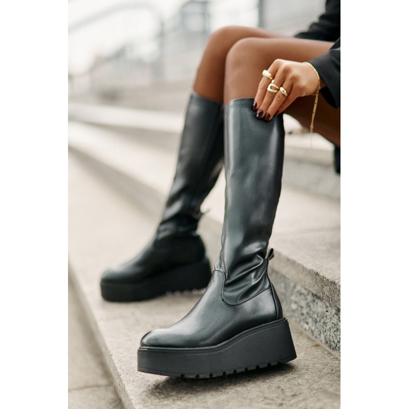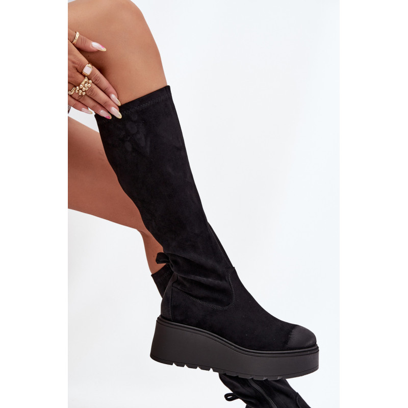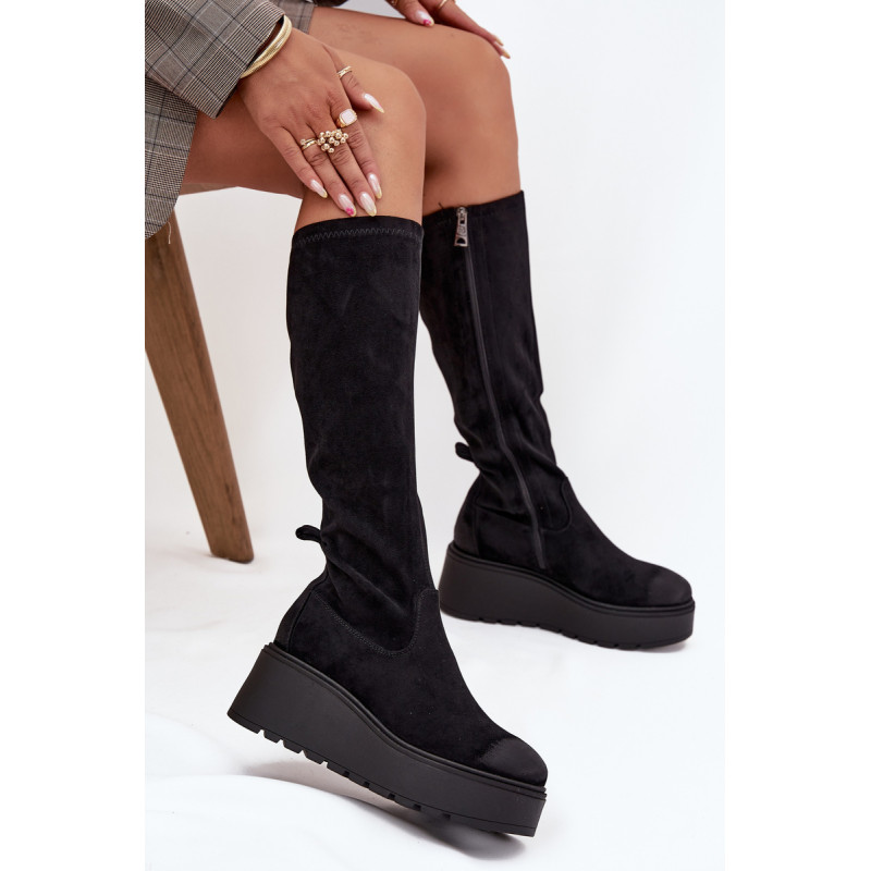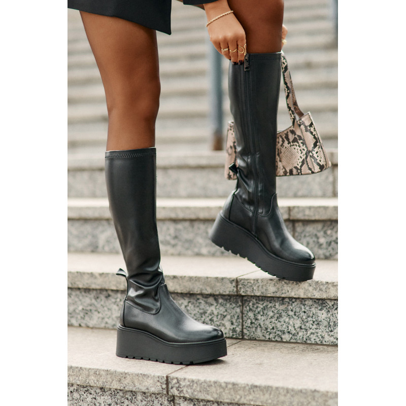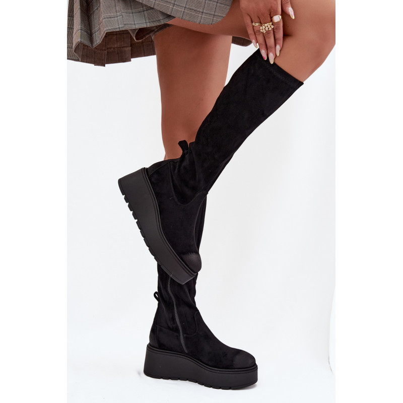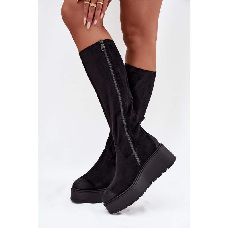 Ekologiški zomšinių aulinių batai yra stilingas ir patogus pasirinkimas vėsesnėmis dienomis. Viršutinė dalis siekia virš kelio. Pastatyti ant platformos ir kulno, jie suteikia siluetui aukštį ir eleganciją, taip pat užtikrina patogumą. Modelis užsegamas užtrauktuku, kuris palengvina užsidėjimą, o lengva izoliacija užtikrina šilumą ir komfortą dėvint. Šie batai sujungia modernų dizainą su funkcionalumu, puikiai tinka kasdieniams ir elegantiškesniems įvaizdžiams. Rekomenduojame naudotis dydžių lentele renkantis dydį. Renkantis dydį, vadovaukitės dydžių lentele.