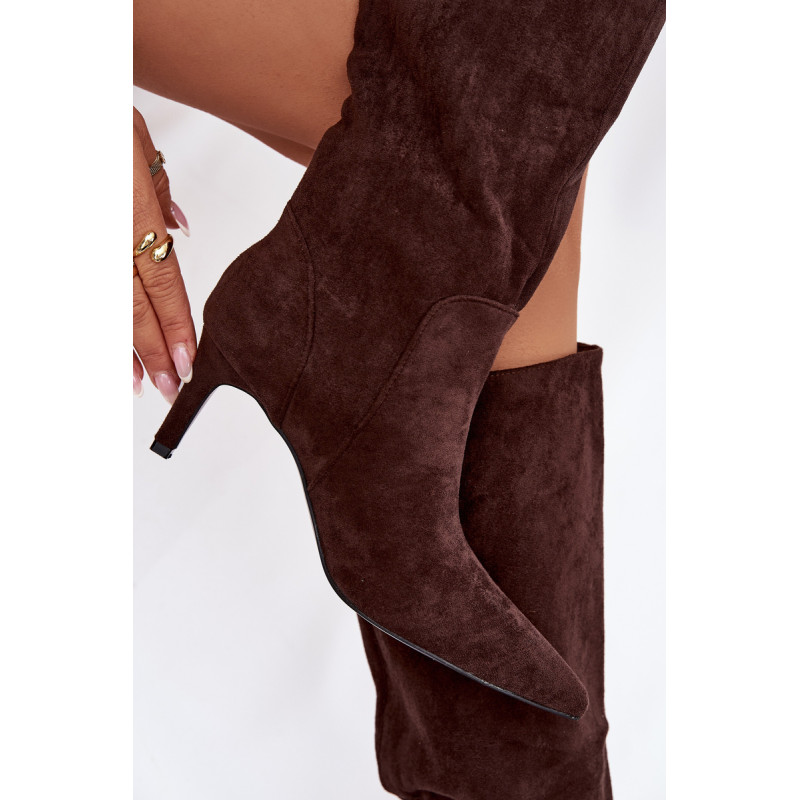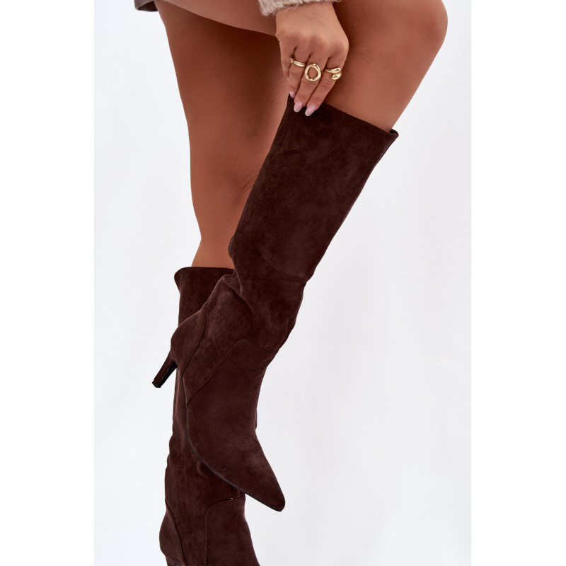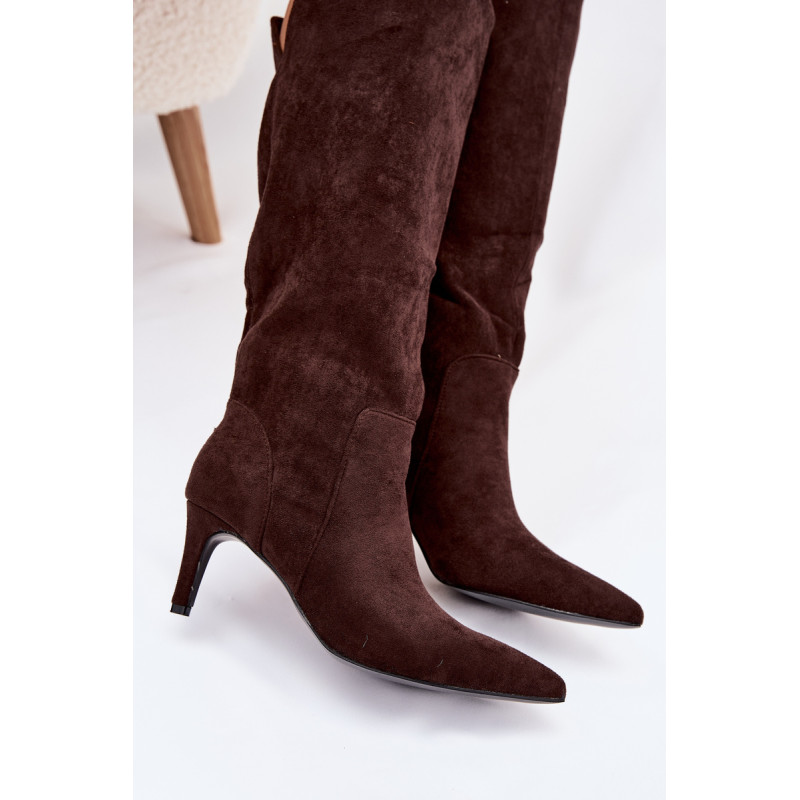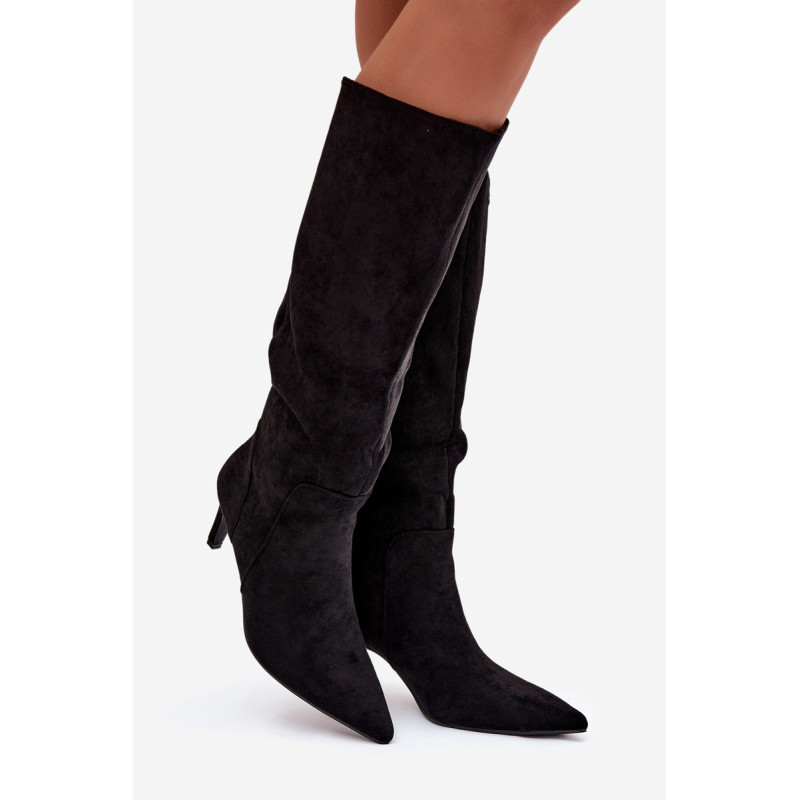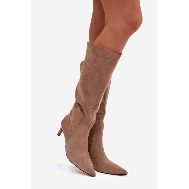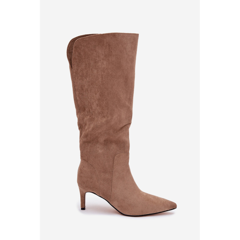 Moteriški auliniai batai, pagaminti iš minkšto ekologinio zomšos audinio, yra elegantiškas ir moteriškas pasirinkimas vėsesnioms dienoms. Modelis su siauru kulnu puikiai pailgina kojas. Aštrūs priekiniai. Viduje, išklotas batų vilna, suteikia malonią šilumą ir patogumą dėvint. Auliniai batai yra slip-on tipo, todėl lengva juos užsidėti. Puikus pasirinkimas kasdieniam dėvėjimui ir elegantiškesnėms aprangoms. Renkantis dydį, vadovaukitės dydžių lentele.