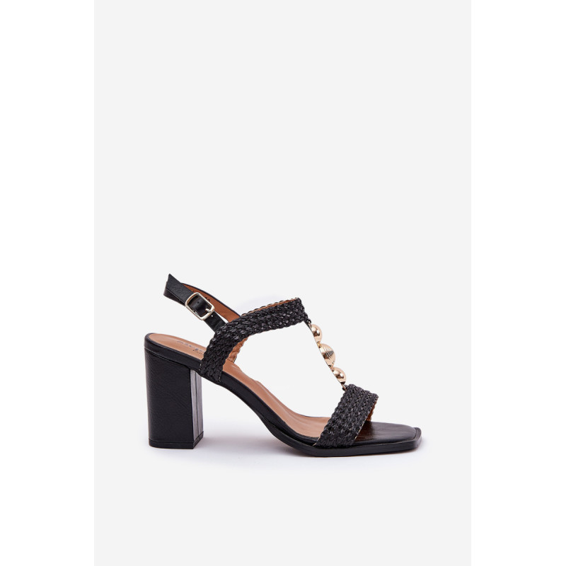 Moteriški sandalai su įspūdinga pintine, pastatyti ant stabilaus bloko kulno. Priekyje subtilus auksinis dekoras sujungia dvi juostas, suteikdamas joms unikalų charakterį. Tai puikus modelis vasaros vakarėliams, ypatingoms progoms ir elegantiškiems stiliams! Renkantis dydį, vadovaukitės dydžių lentele.