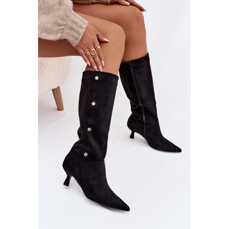 Moteriški auliniai batai iš ekologiško zomšos yra elegentiškas modelis, puikiai tinkantis vėsesnėms dienoms. Juos užsegama užtrauktuku, užtikrinančiu patogų įėjimą ir gerą prigludimą prie kojos. Smailėjantys nosys suteikia jiems moterišką charakterį, o sidabriniai dekoratyviniai elementai šoninėse kulkšnies dalyse subtiliai pabrėžia jų stilių. Pastatyti ant žemo kulno, jie jungia komfortą su madingu išvaizda — puikus pasirinkimas kasdieniam dėvėjimui ir formalesniems deriniams. Renkantis dydį, vadovaukitės dydžių lentele.